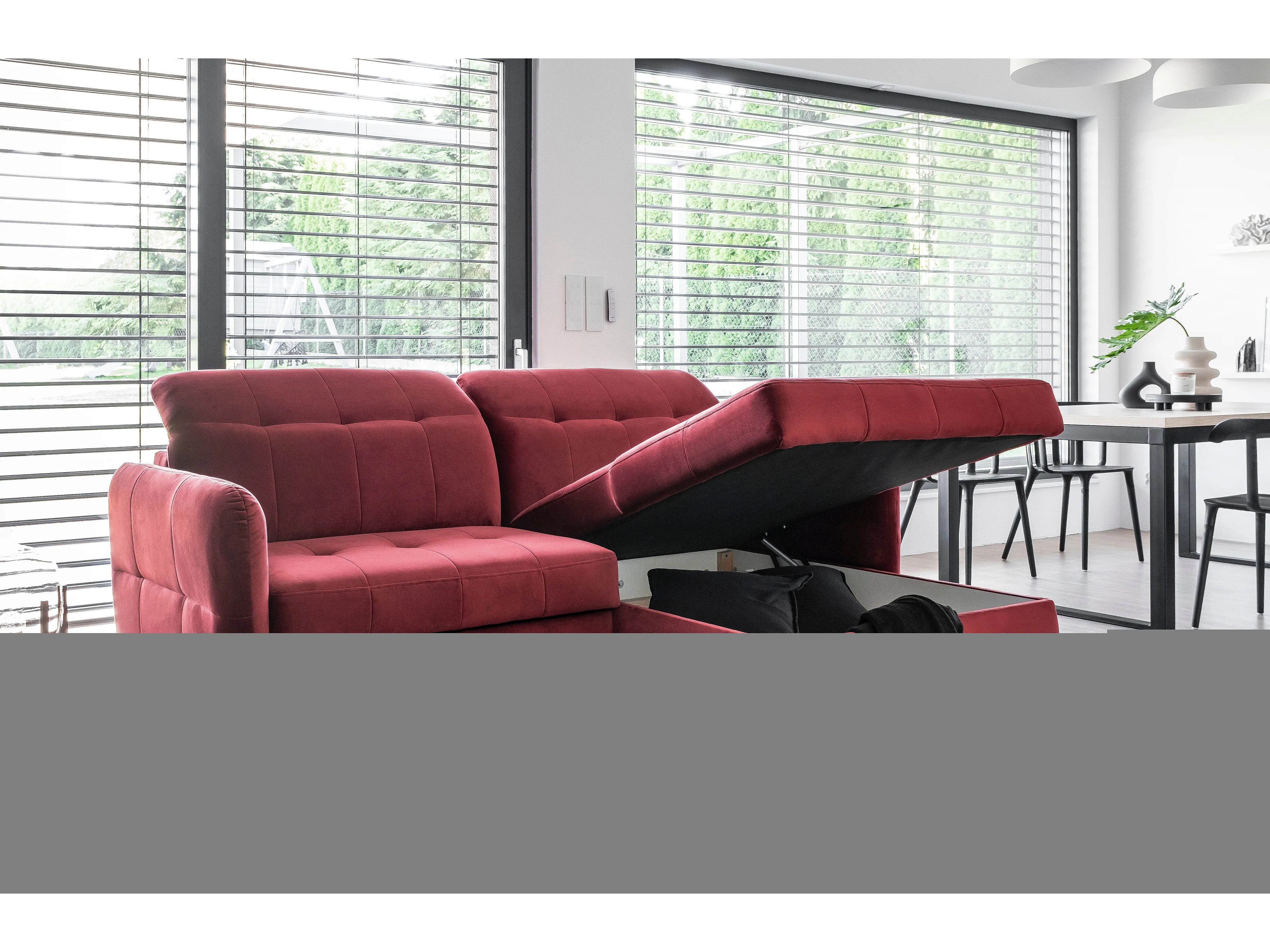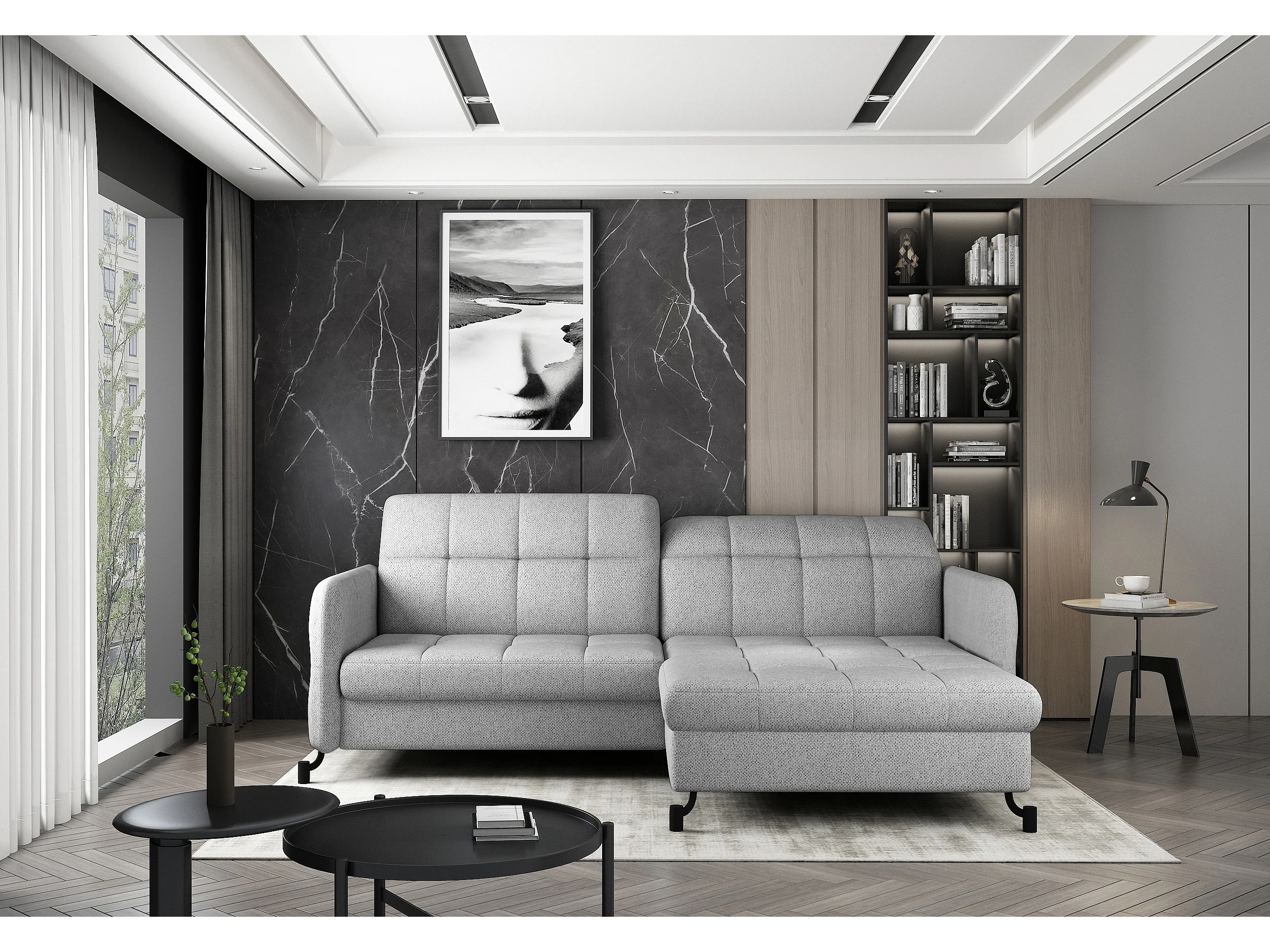 Canapé convertible angle droit avec têtières réglables tissu matelassé gris clair Lory 225cm