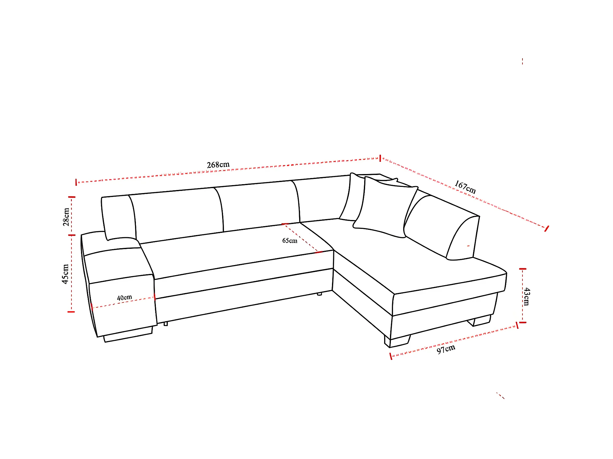 Canapé convertible angle gauche tissu noir et simili cuir blanc Polky 272cm