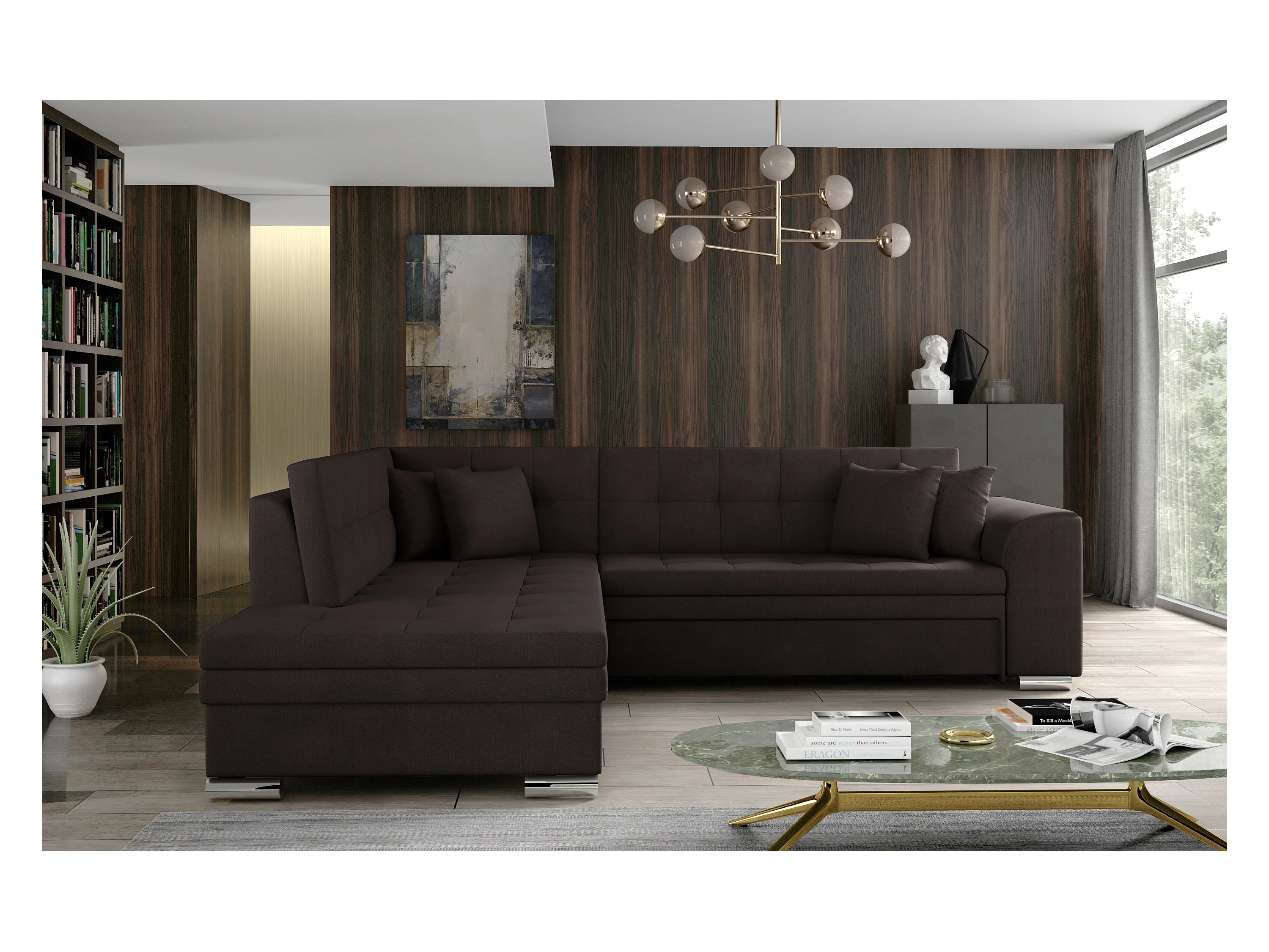 Canapé convertible angle gauche velours chocolat et chromé Pika 260cm