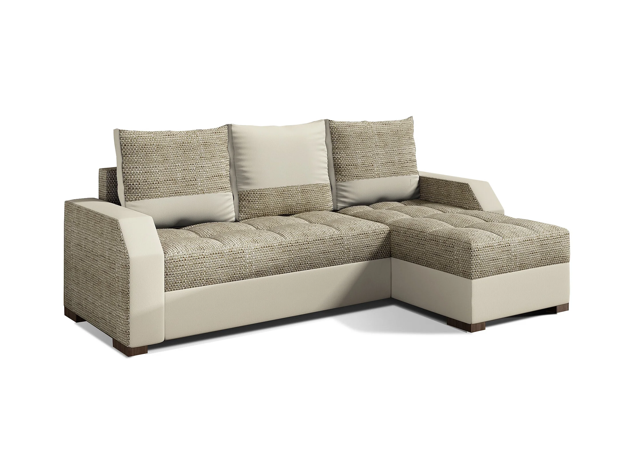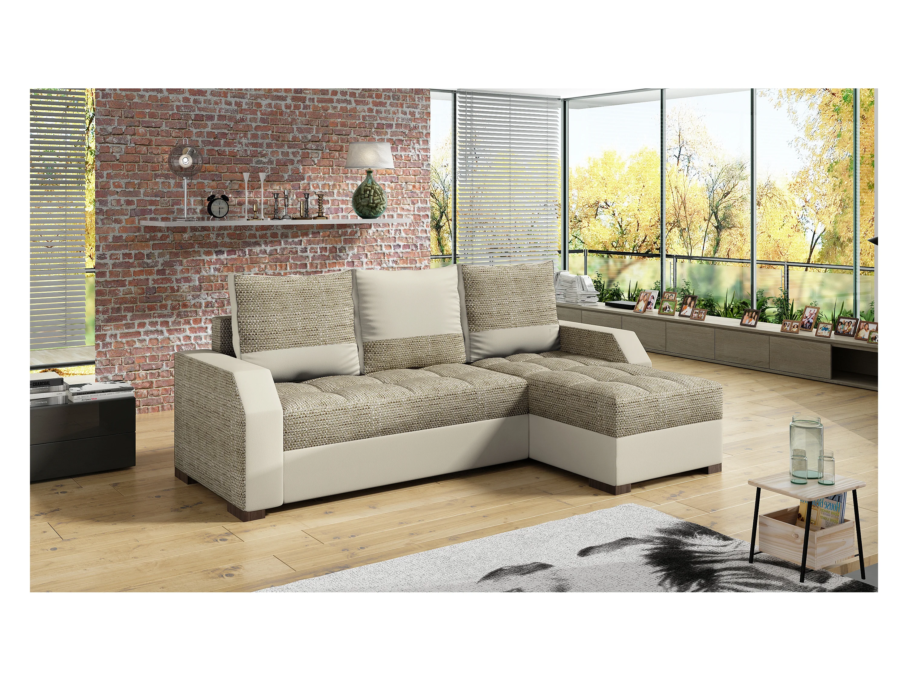 Canapé convertible angle réversible design tissu beige clair chiné et simili cuir beige Zarky 250cm