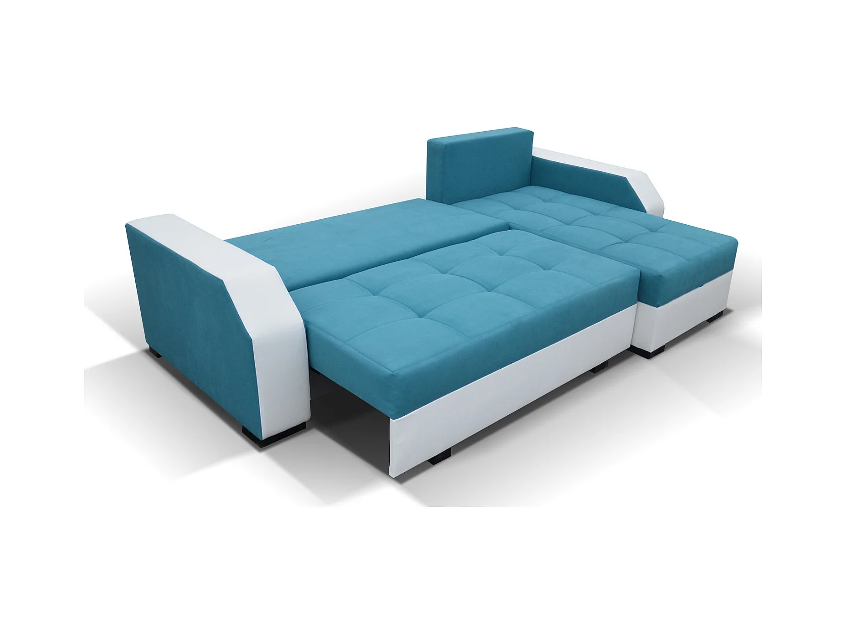 Canapé convertible angle réversible design tissu gris clair et bleu turquoise Zarky 250cm