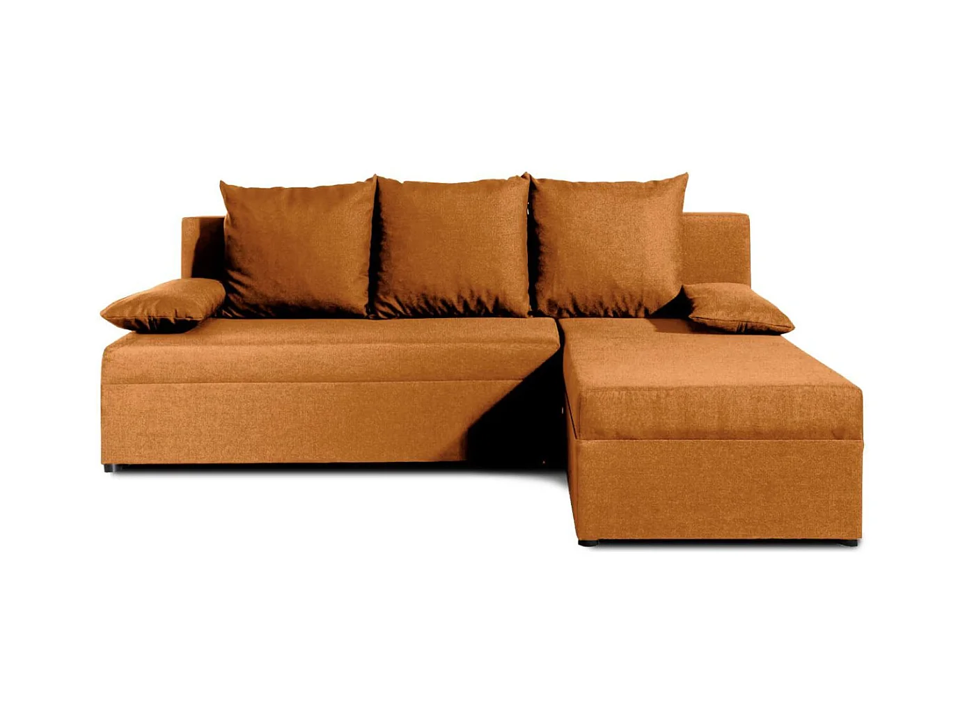 Canapé angle droit convertible tissu rouille et pieds acier chromé Zabor 270cm