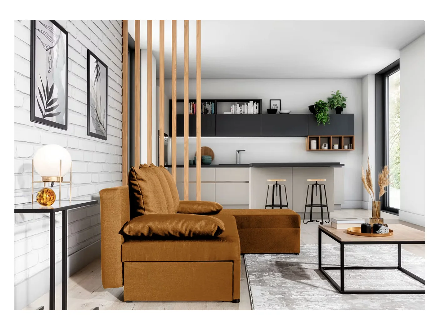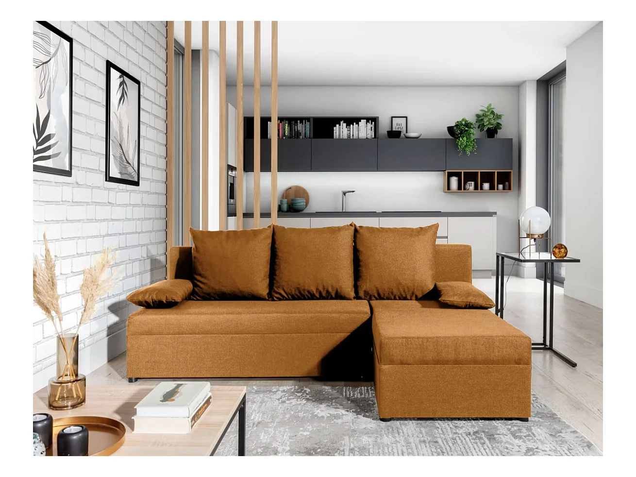 Canapé convertible angle réversible tissu camel Gary 206cm