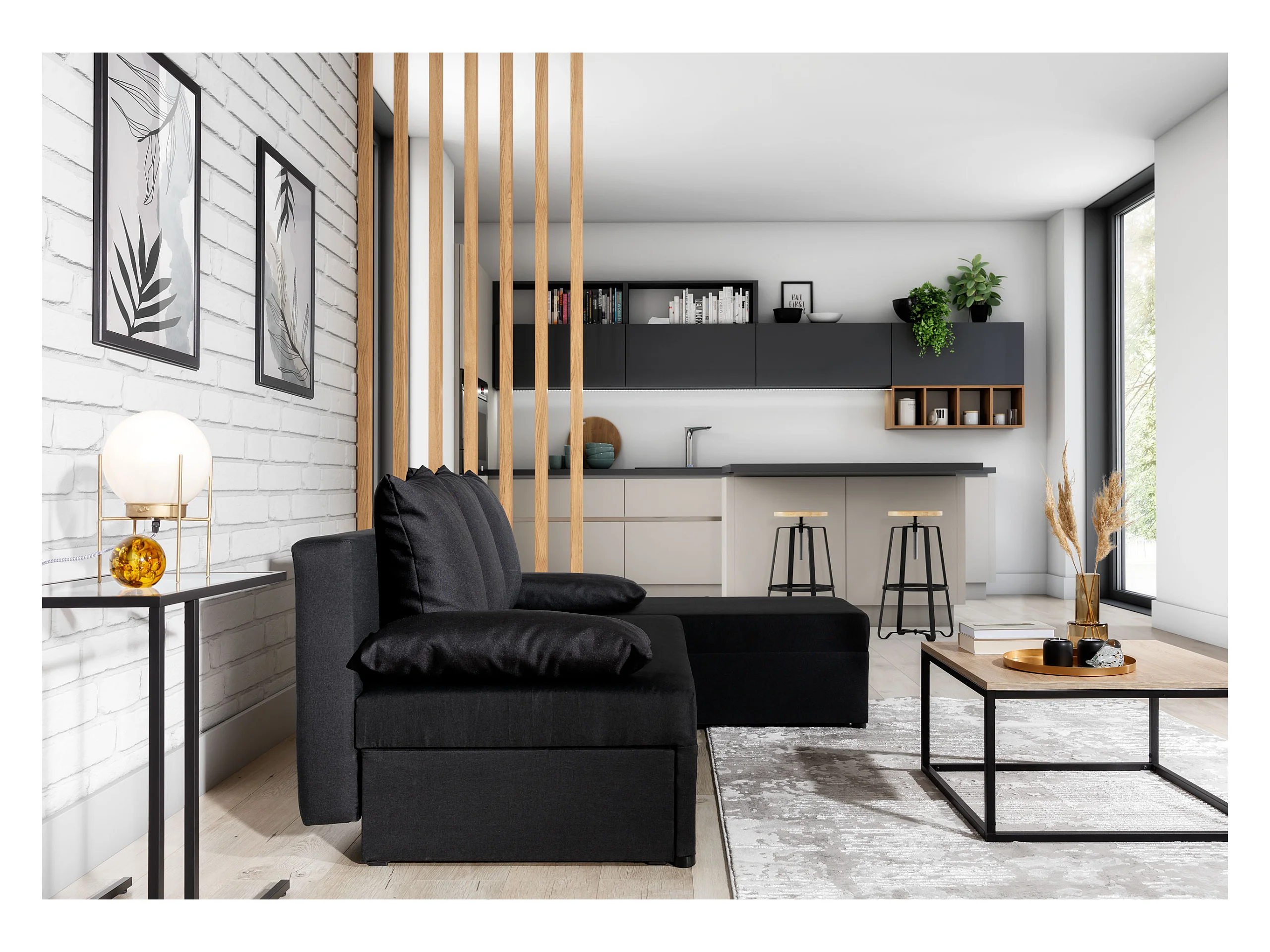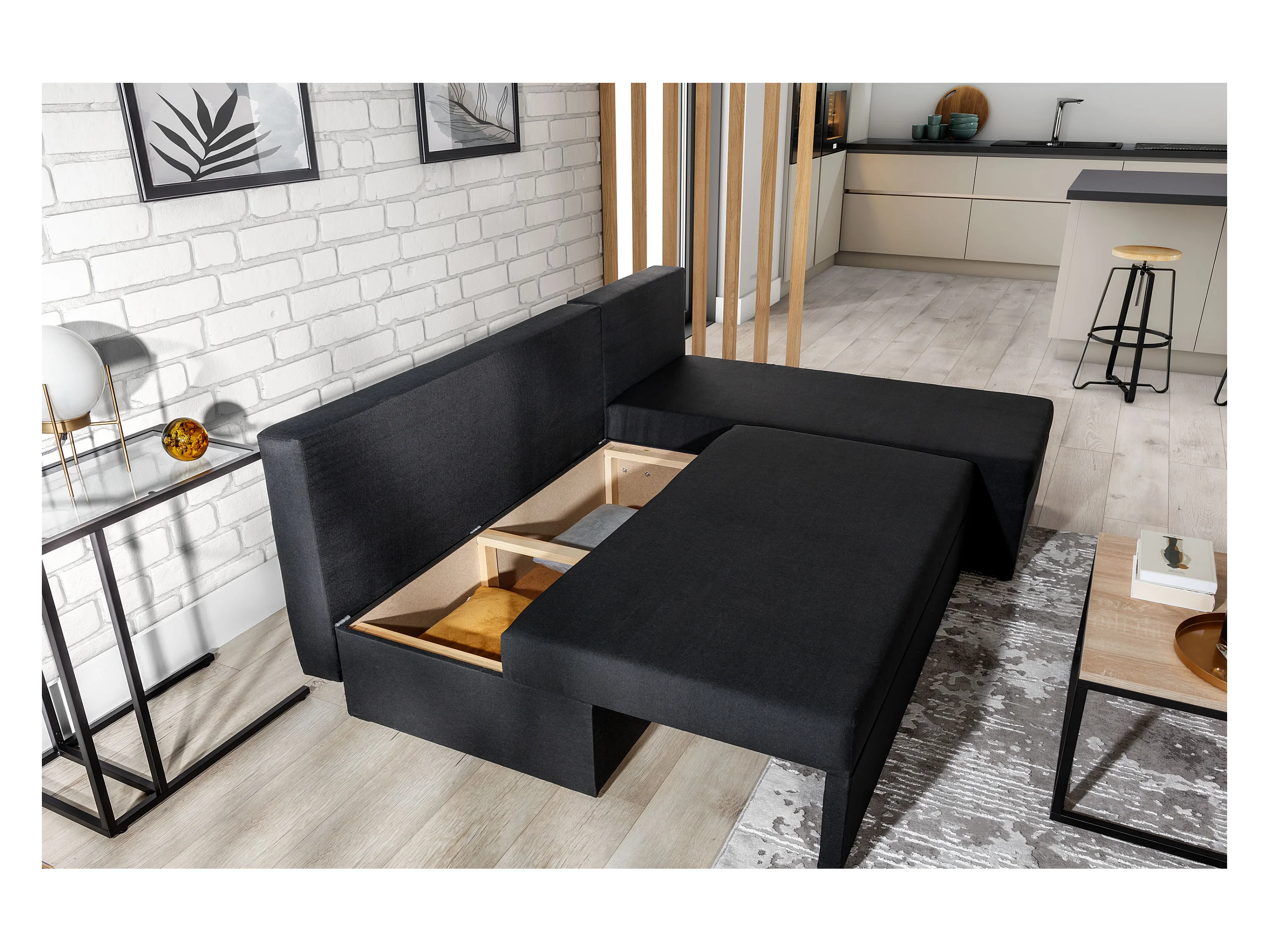 Petit canapé d'angle en tissu convertible avec coffre BOREA 208cm-Marron-angle droit