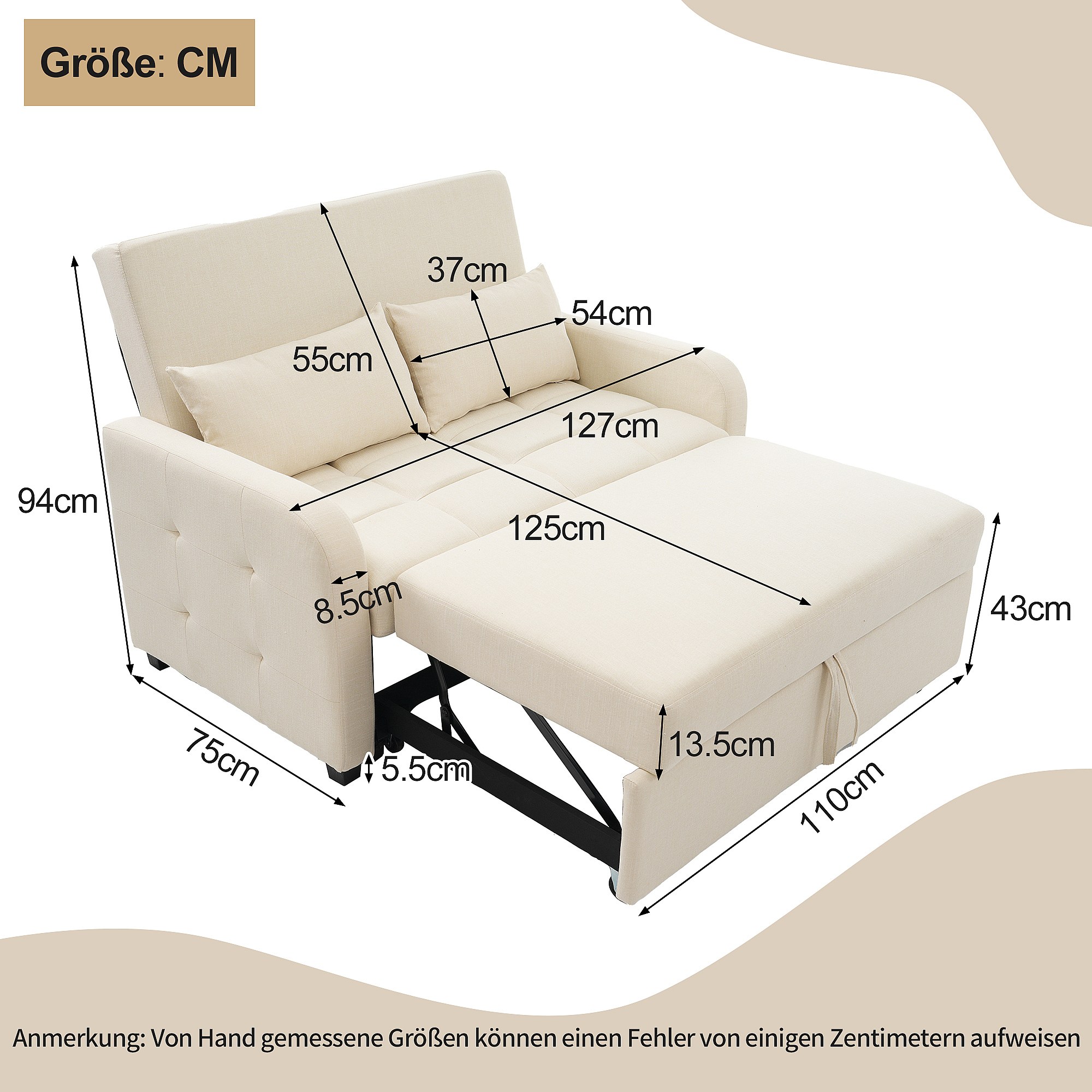 Canapé convertible avec accoudoirs et dossier réglable - lin beige - pour salon et chambre
