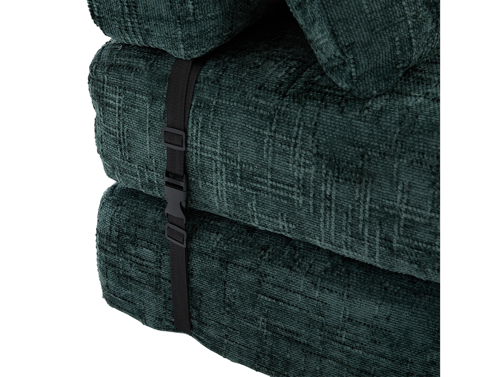 Canapé convertible avec coussins lombaires et appui-tête, chenille vert foncé - pour salon et chambre