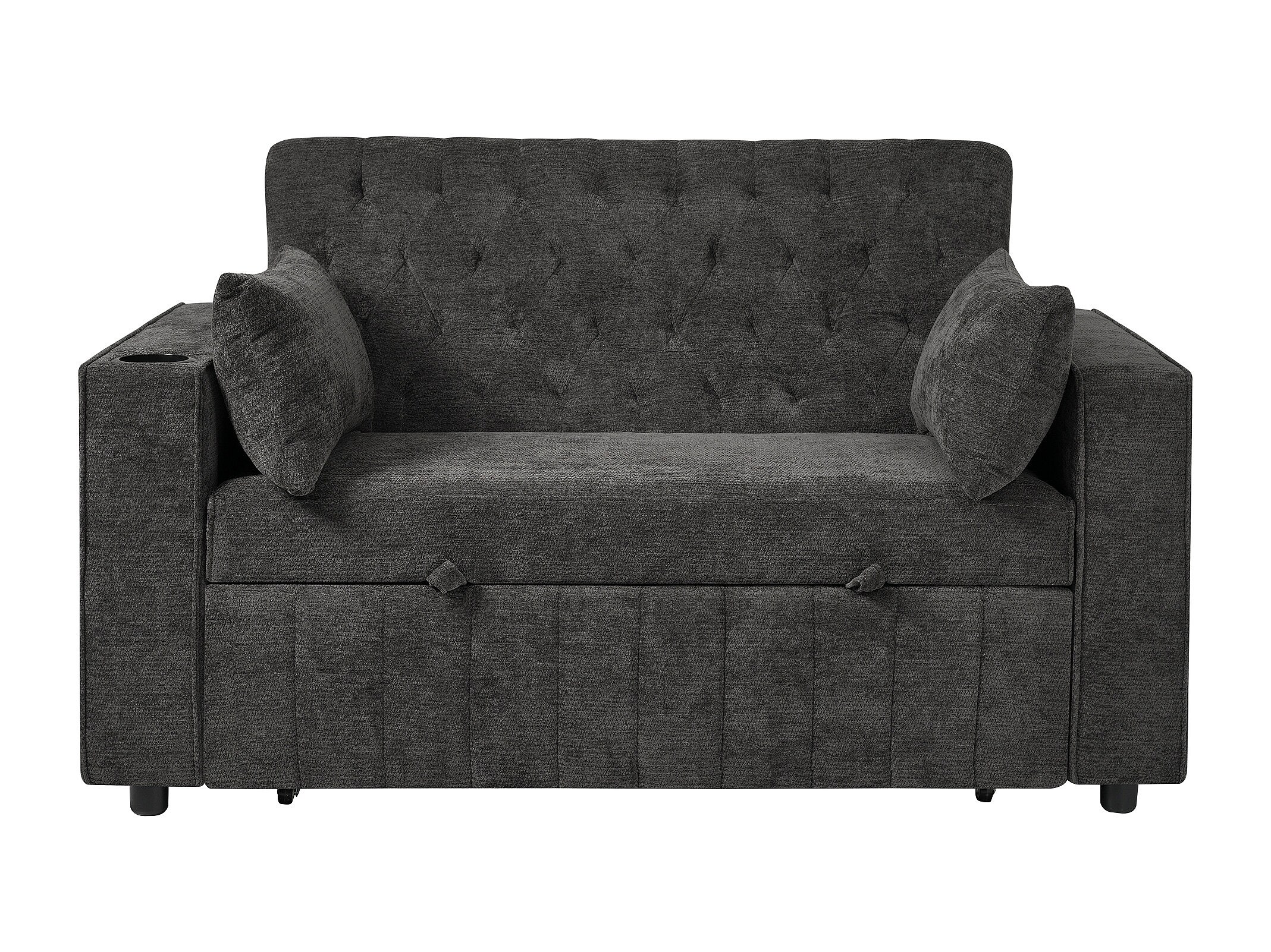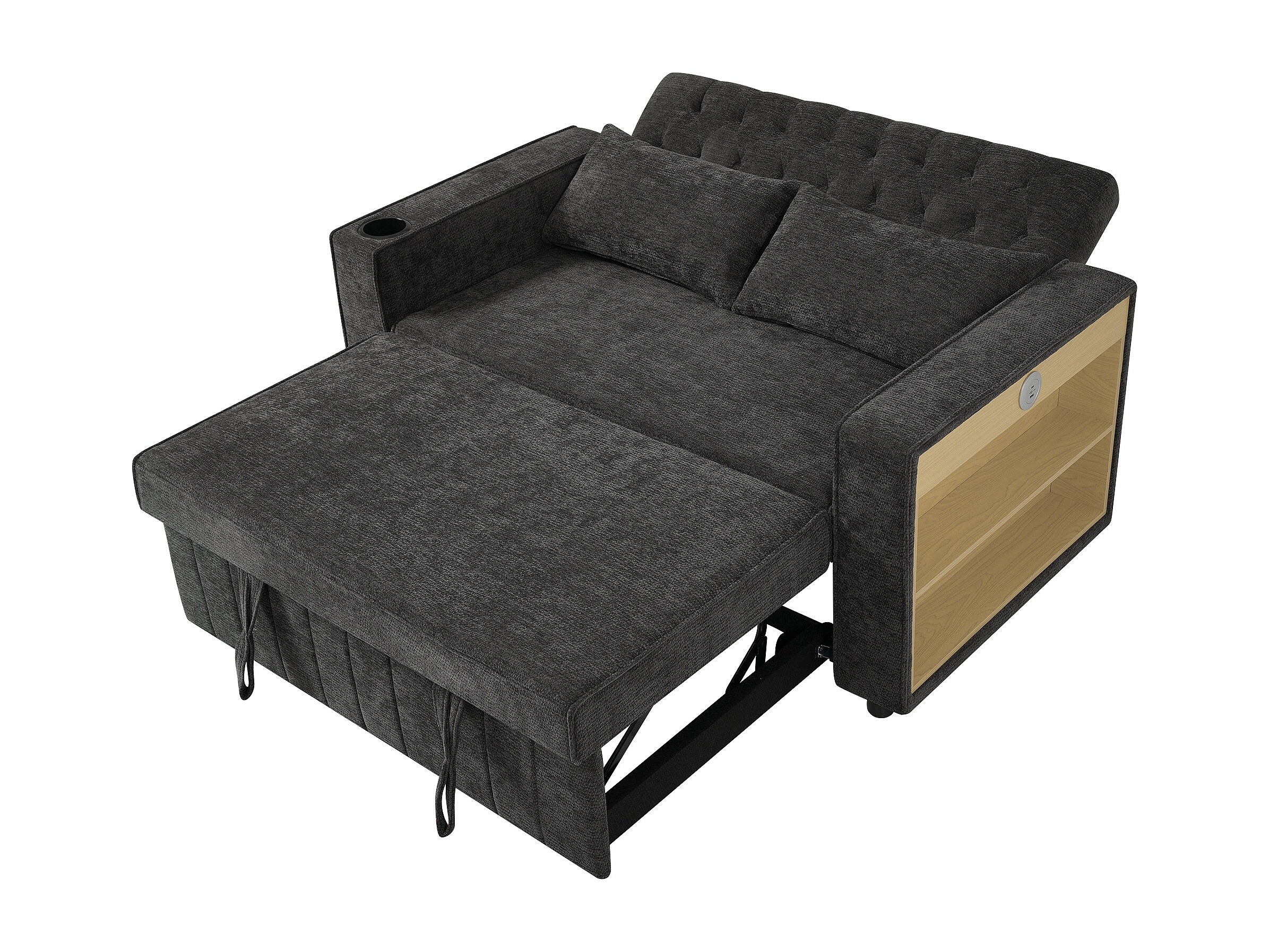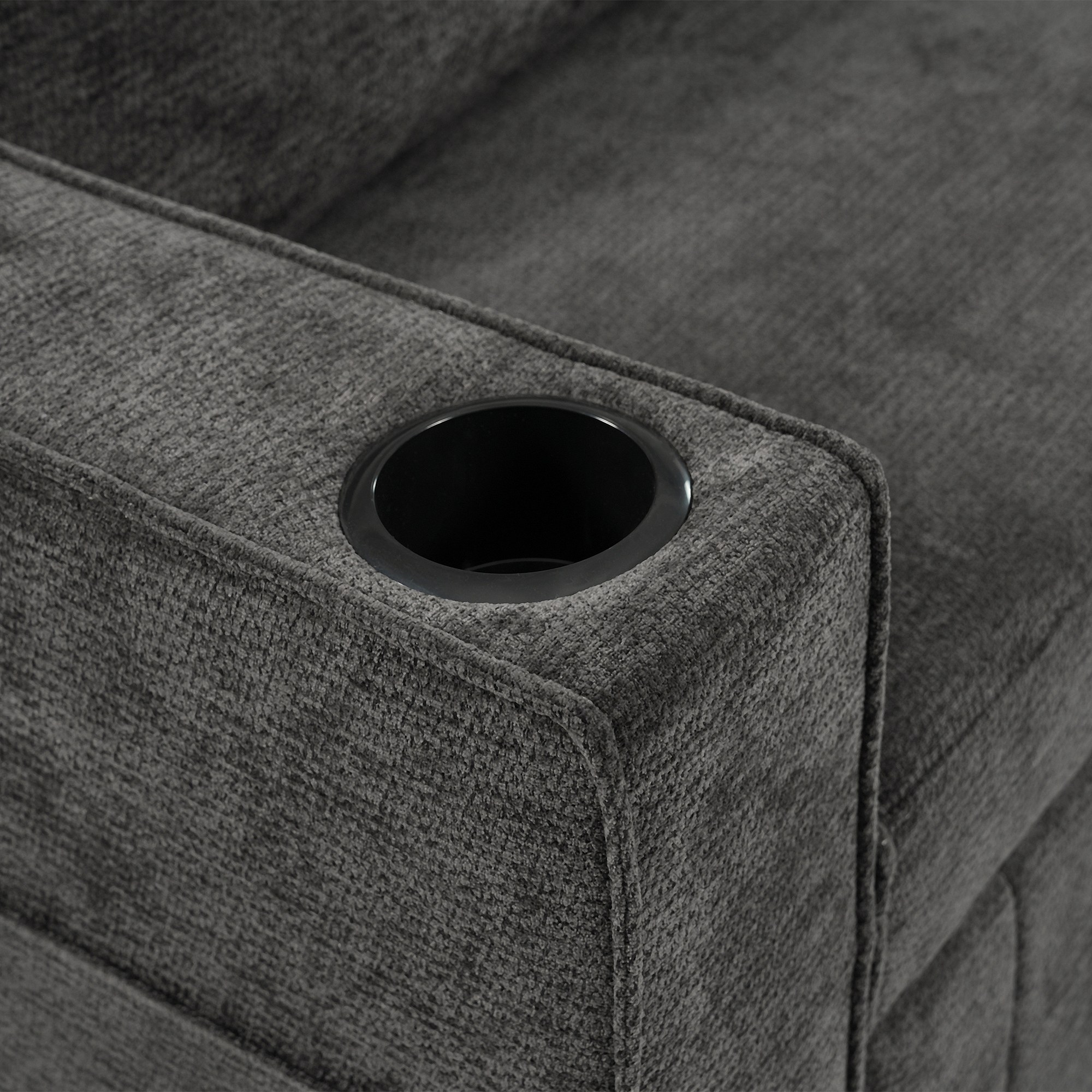 Canapé convertible avec porte-gobelets, étagères de rangement et ports USB - Chenille gris foncé