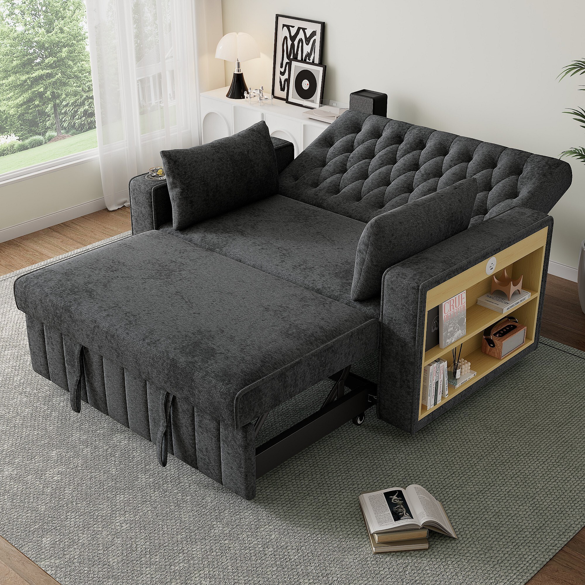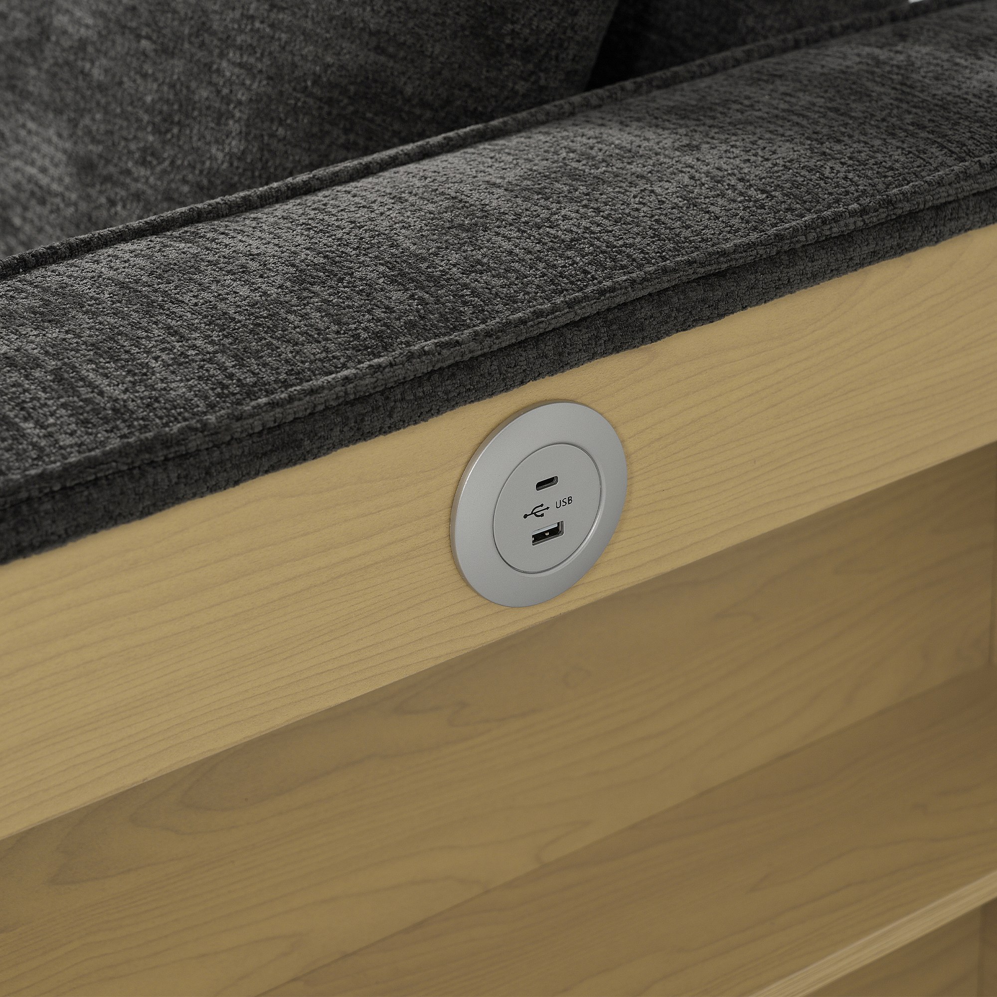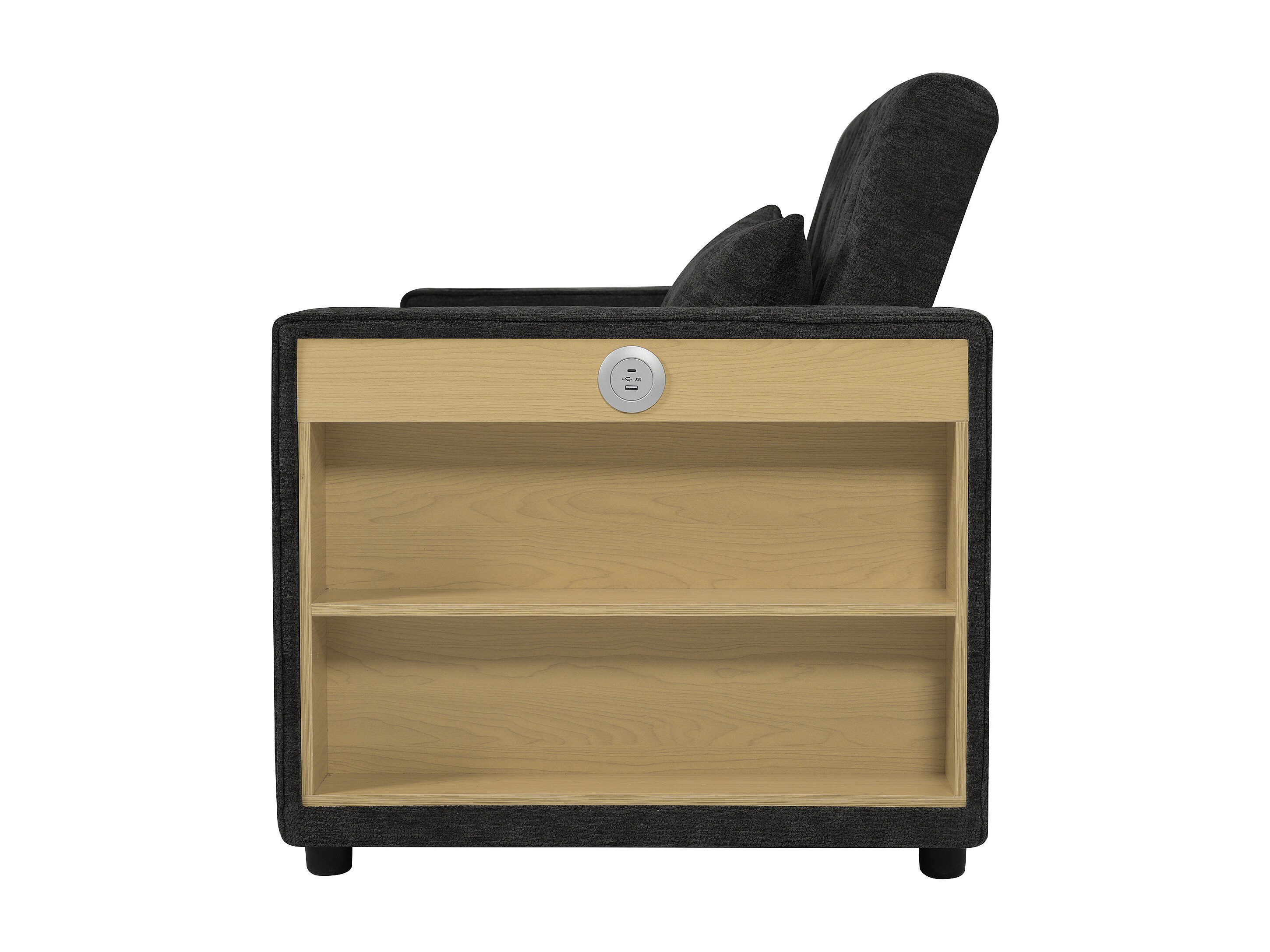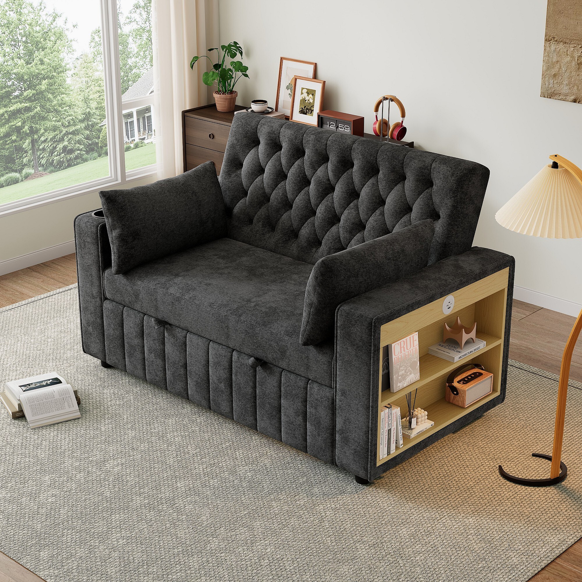 Canapé convertible avec porte-gobelets, étagères de rangement et ports USB - Chenille gris foncé