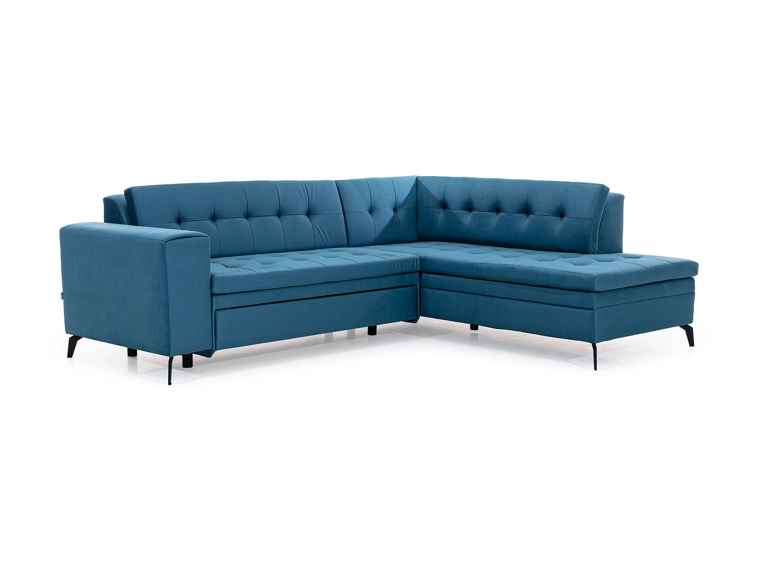 Canapé convertible capitonné angle gauche velours noir et pieds métal noir Lazor 295cm