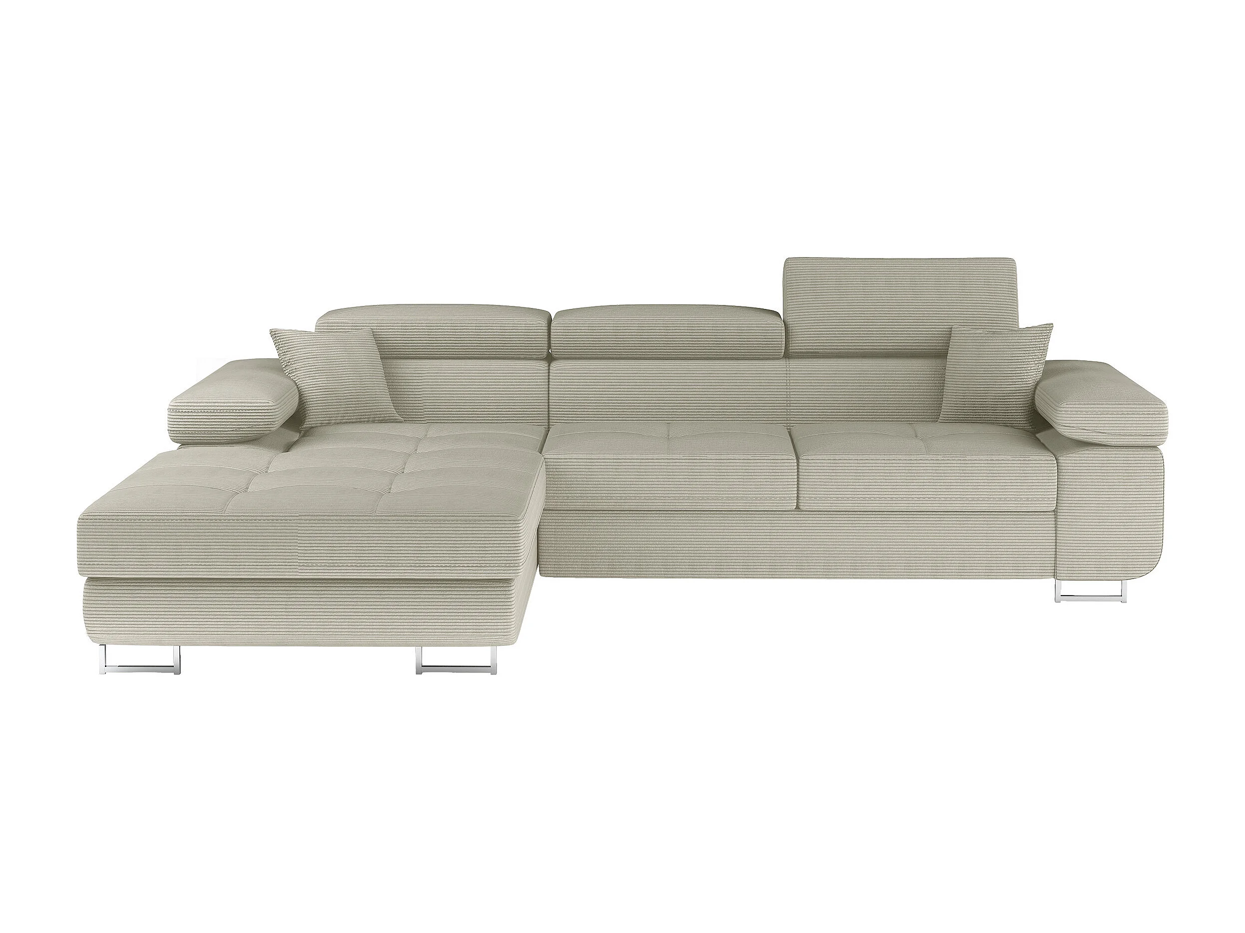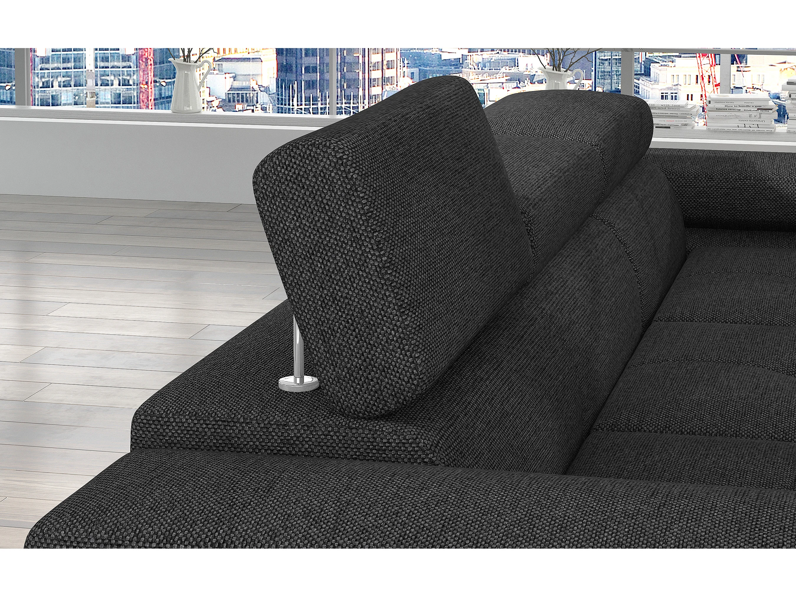 Canapé d'angle convertible tissu appuis-tête réglables KALIZO - Coffre et pieds acier chromé-Gris foncé-angle droit
