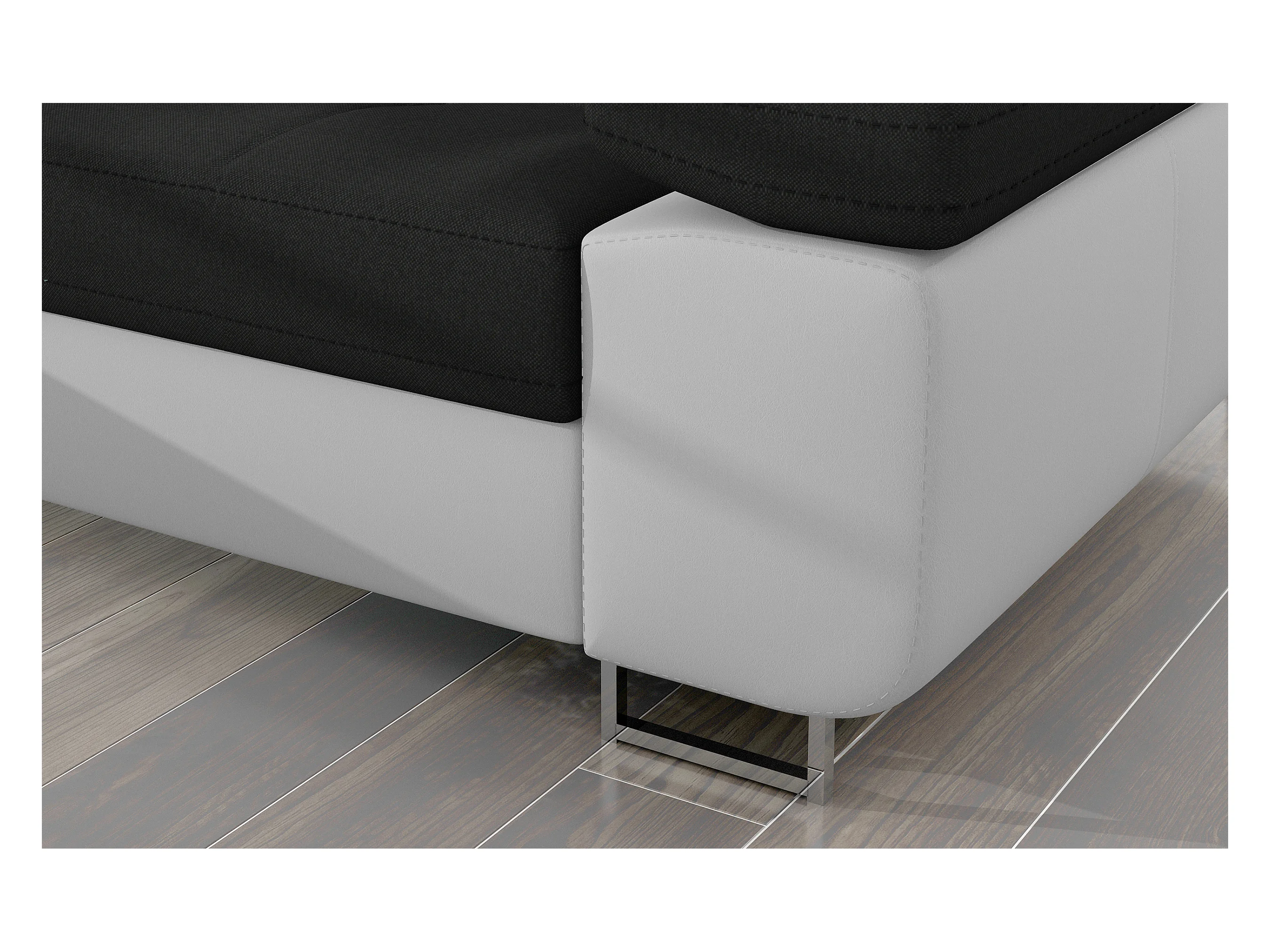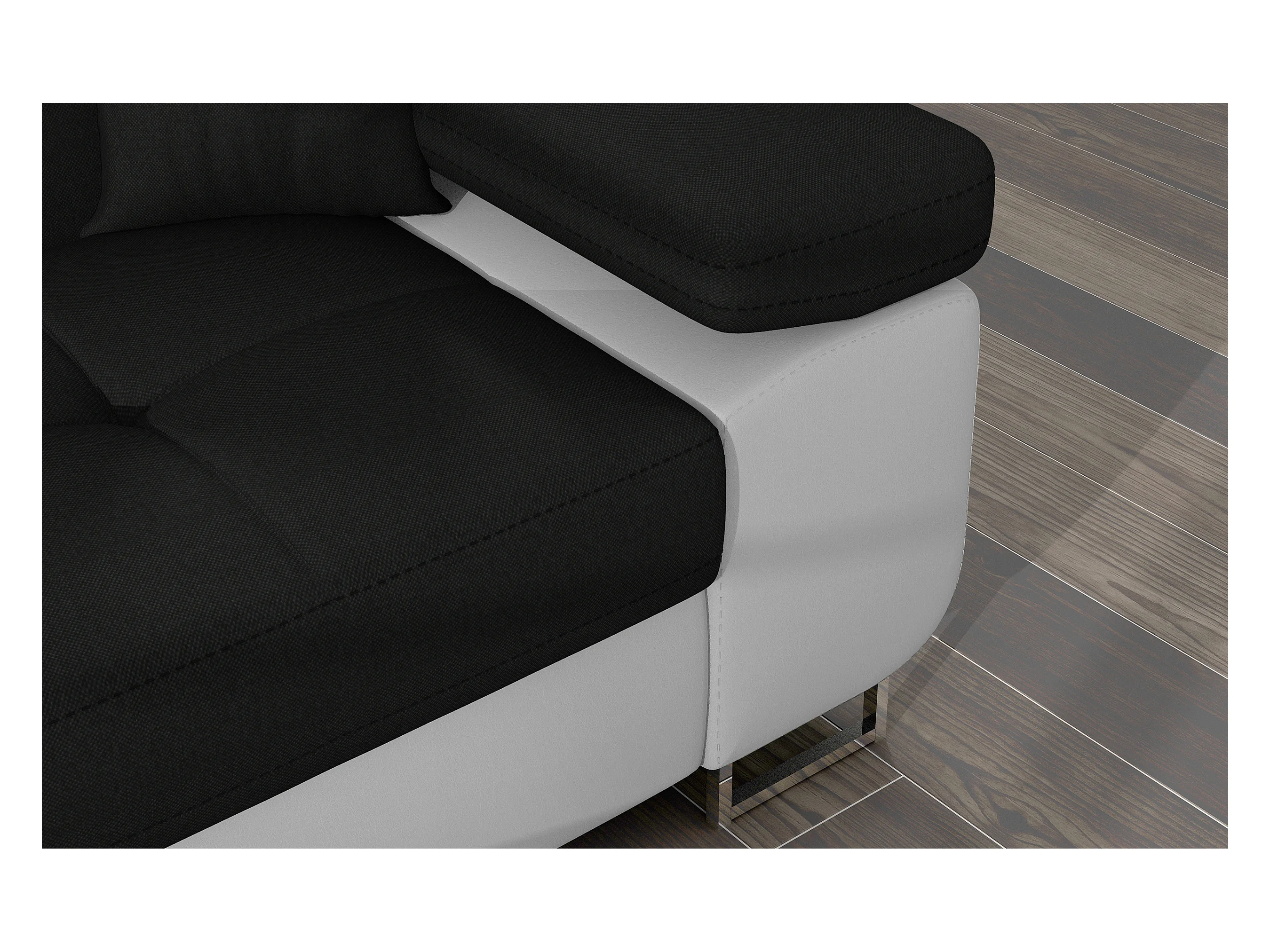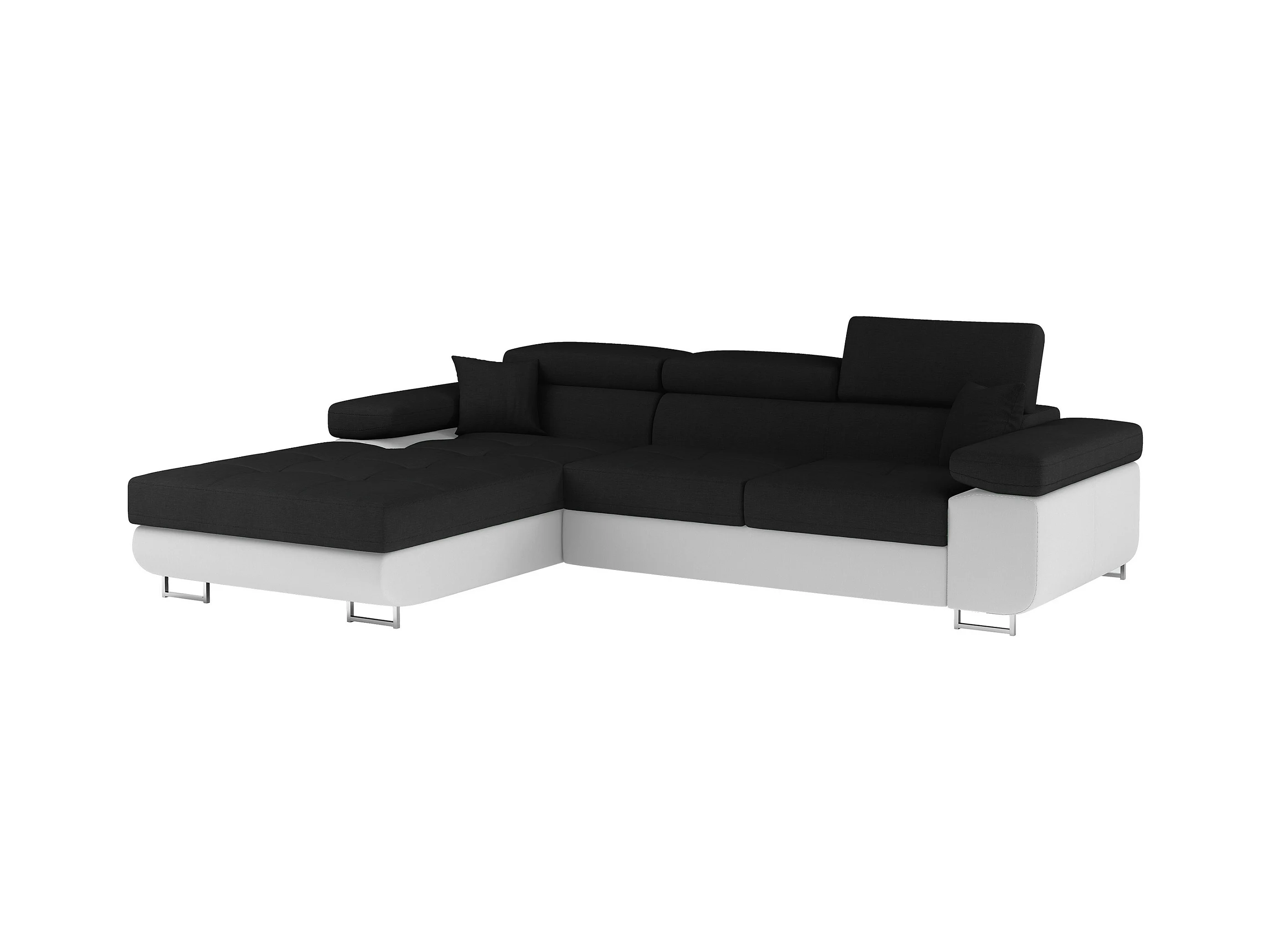 Canapé d'angle convertible Bi matière appuis-tête réglables KALIZO - Coffre et pieds acier chromé-Blanc/Noir-angle gauche