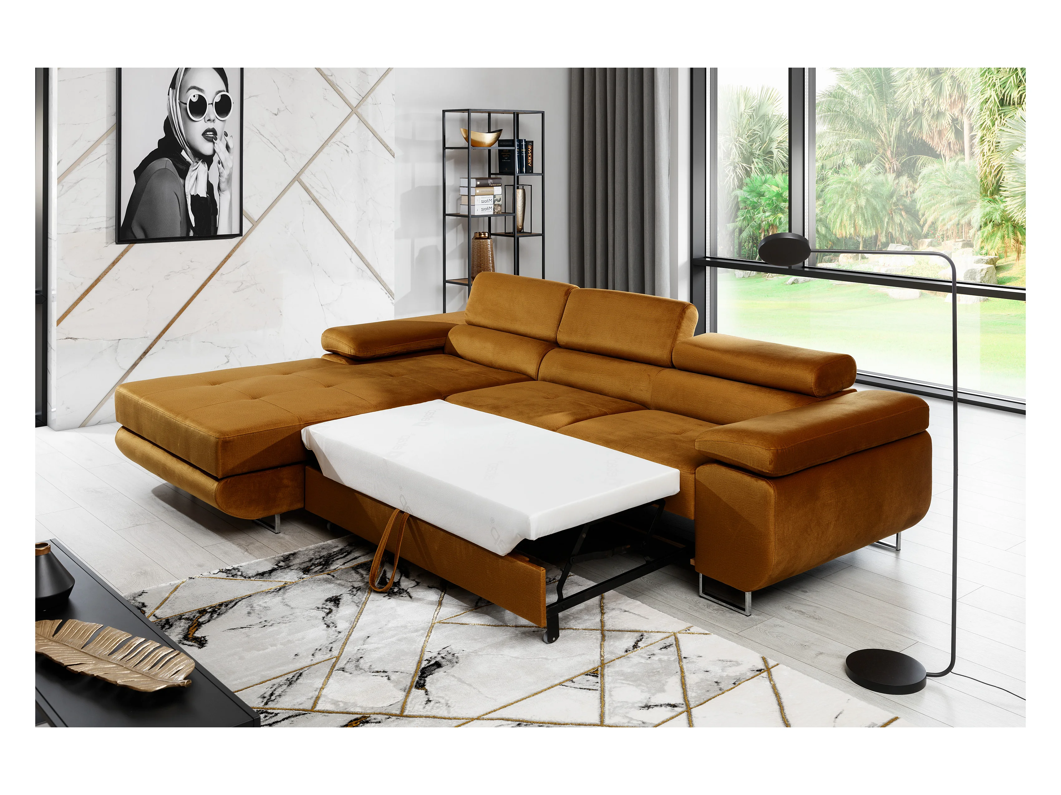 Canapé angle droit convertible velours bleu foncé avec têtières réglables Nikos 265cm