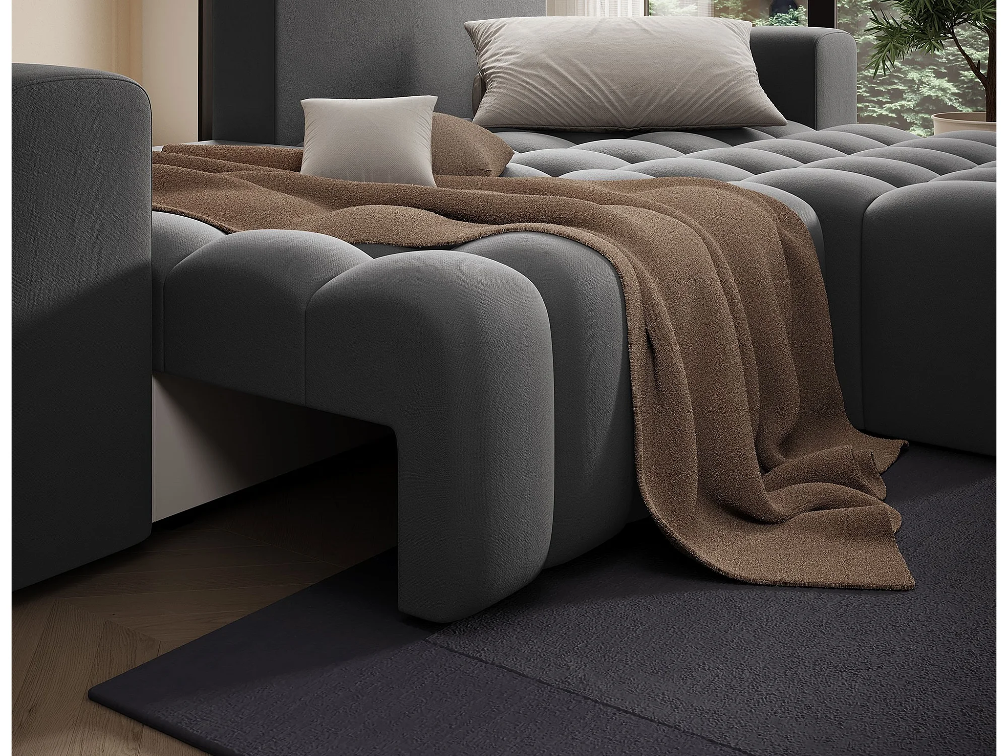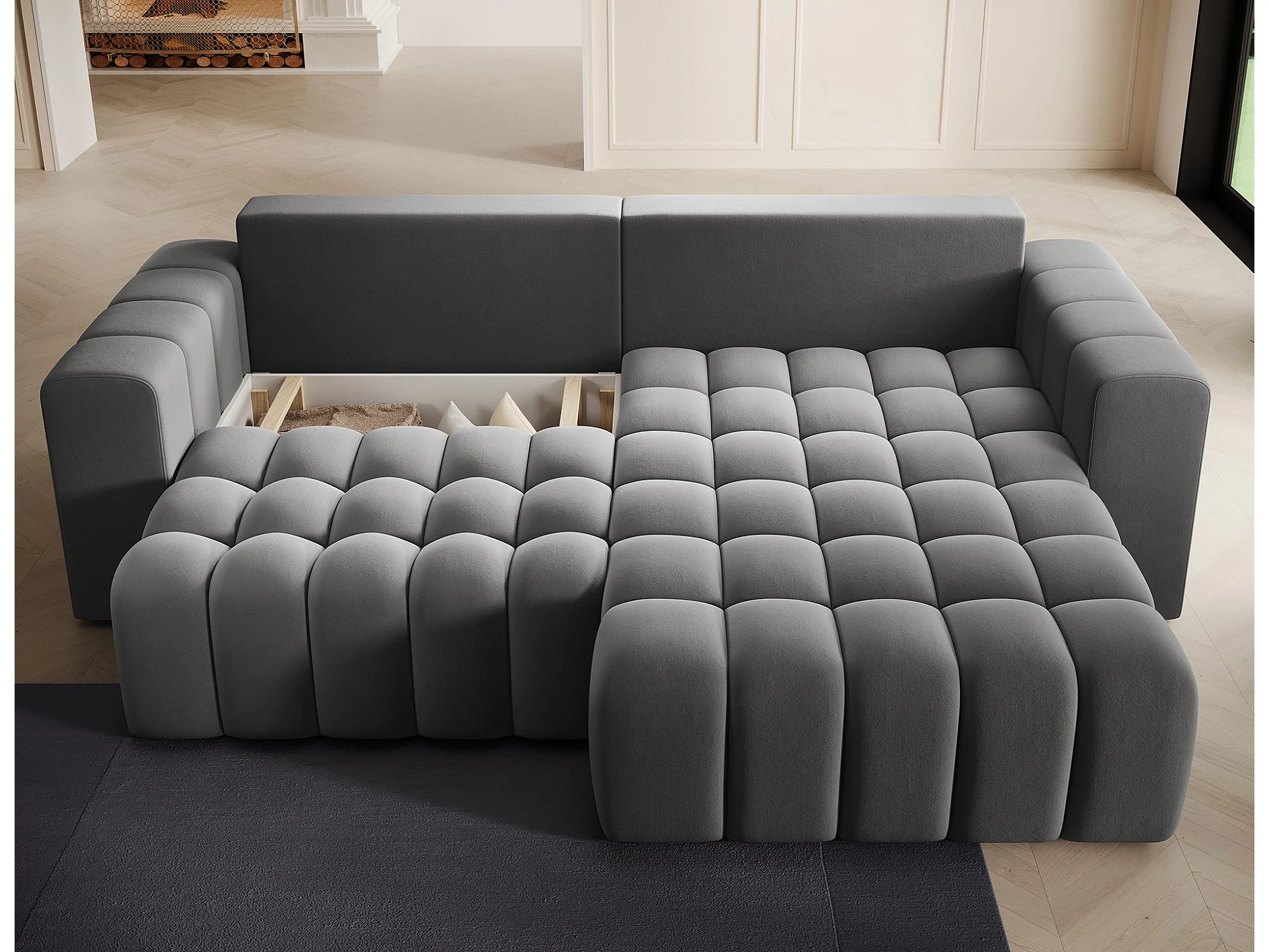 Canapé d’angle velours capitonné BOZEN – Convertible et rangement-Gris foncé-angle droit