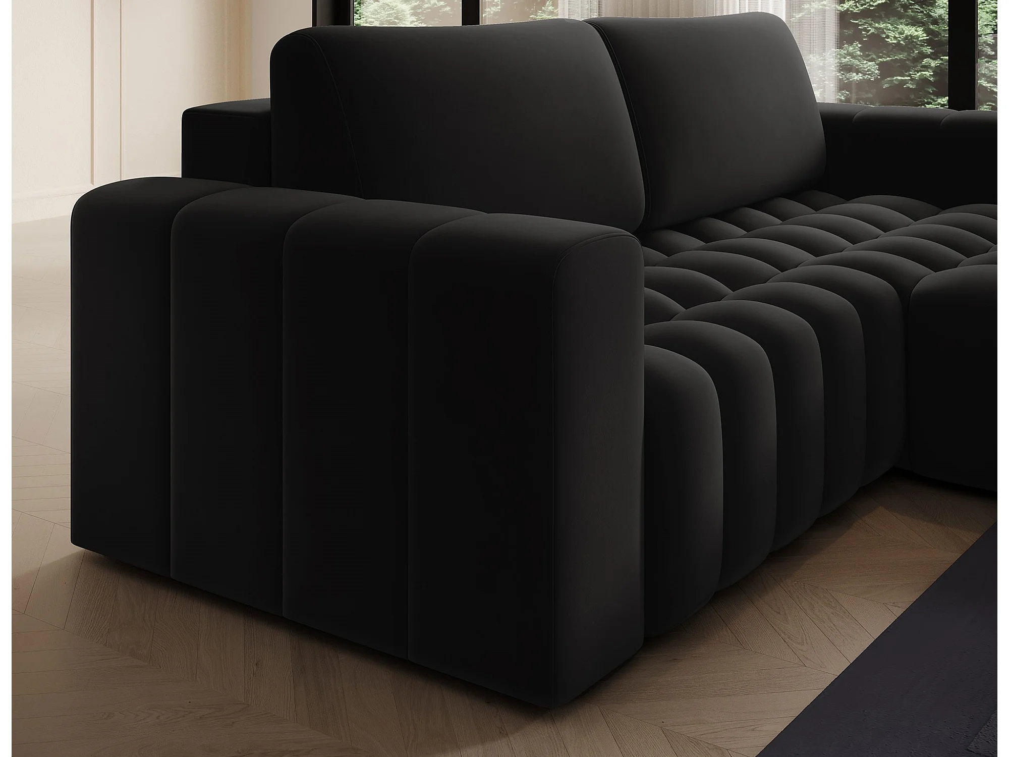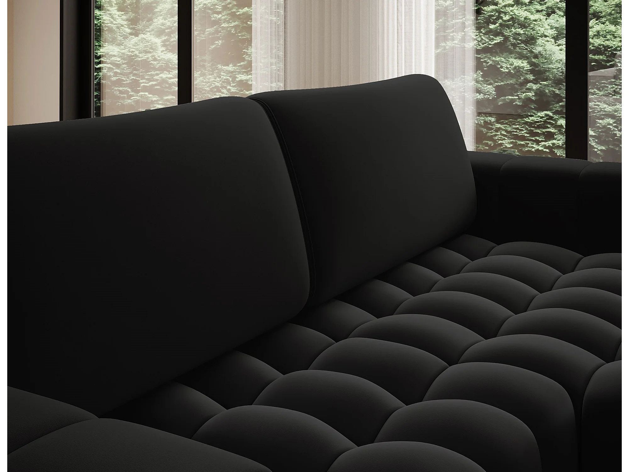 Canapé d’angle velours capitonné BOZEN – Convertible et rangement-Noir-angle droit