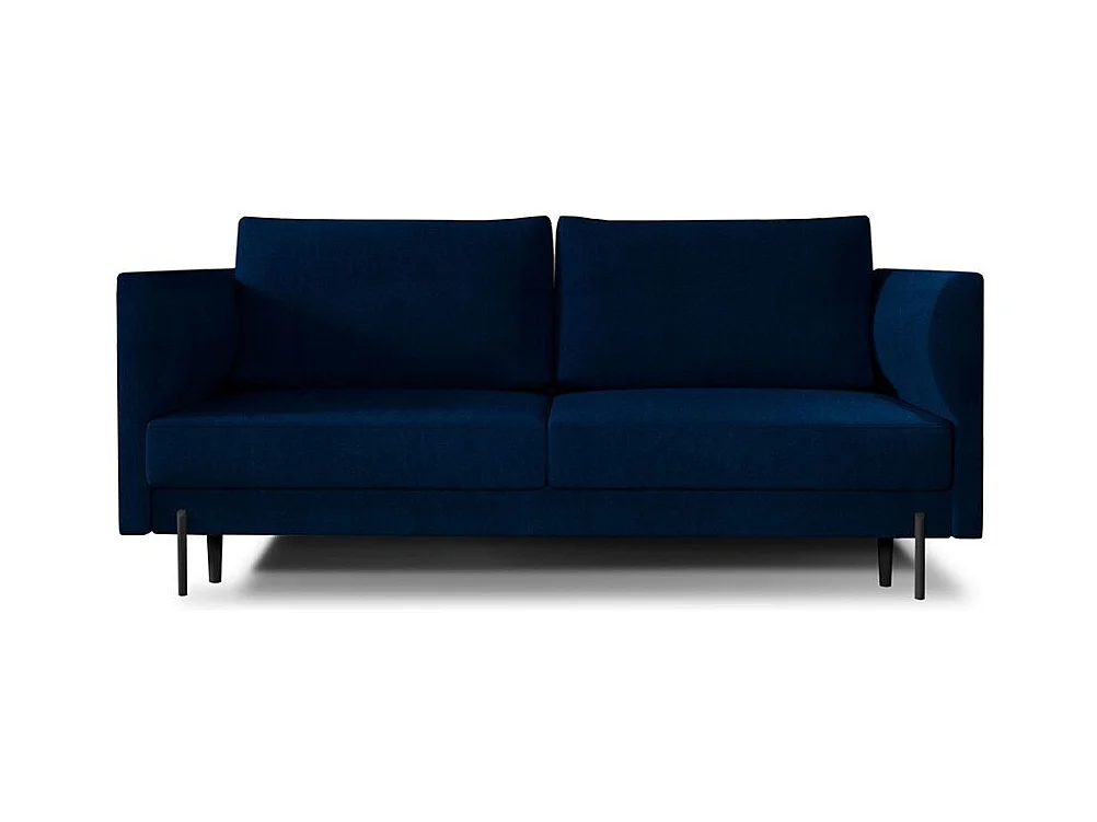 Canapé convertible en velours ROBBY – Rangement et pieds métal noir-Bleu nuit