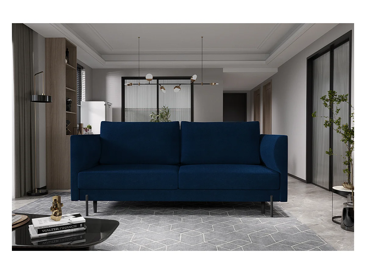 Canapé convertible design 4 places velours bleu nuit et pieds métal noir Arkia 260cm