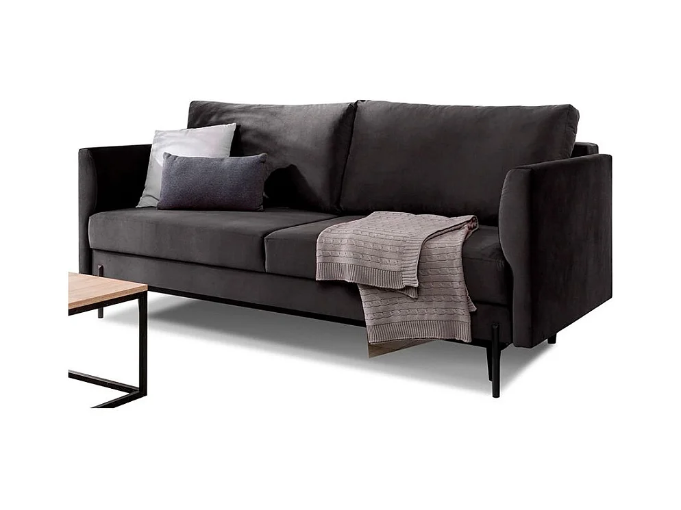 Canapé convertible 3-4 places velours gris foncé et pieds métal noir Zora 250cm