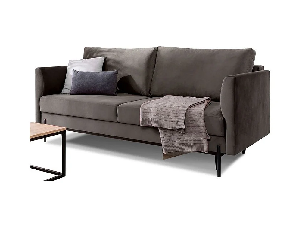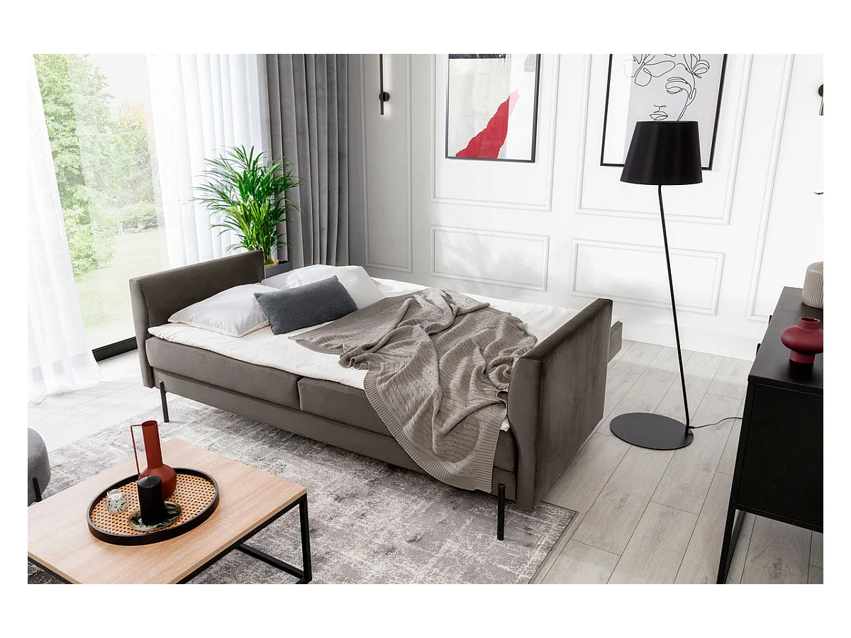 Canapé convertible en velours ROBBY – Rangement et pieds métal noir-Gris taupe
