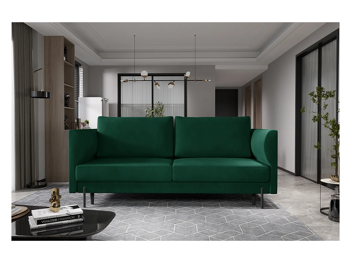Canapé convertible en velours ROBBY – Rangement et pieds métal noir-Vert épinard