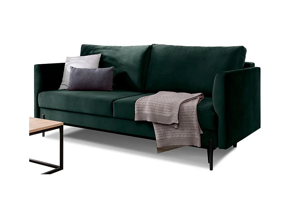 Canapé convertible en velours ROBBY – Rangement et pieds métal noir-Vert