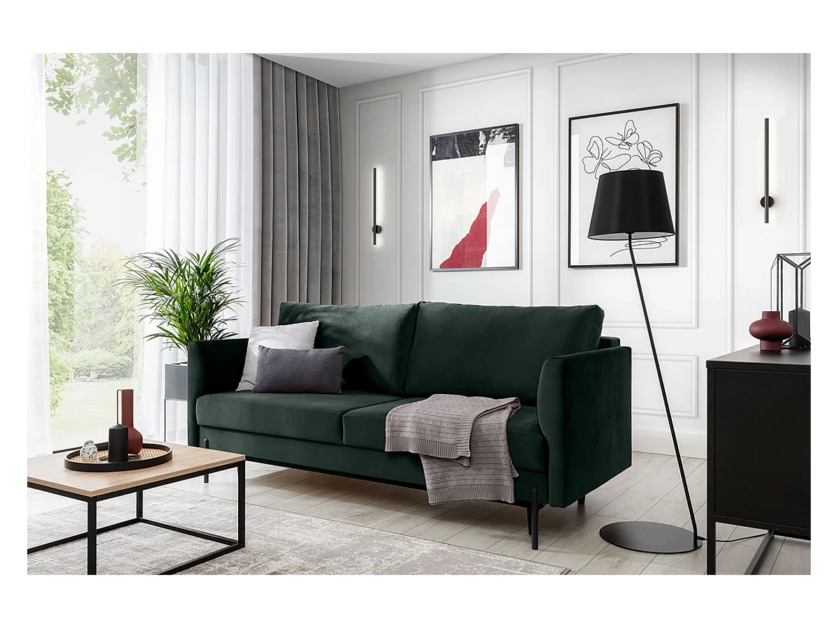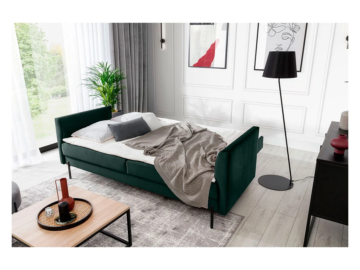 Canapé convertible en velours ROBBY – Rangement et pieds métal noir-Vert épinard