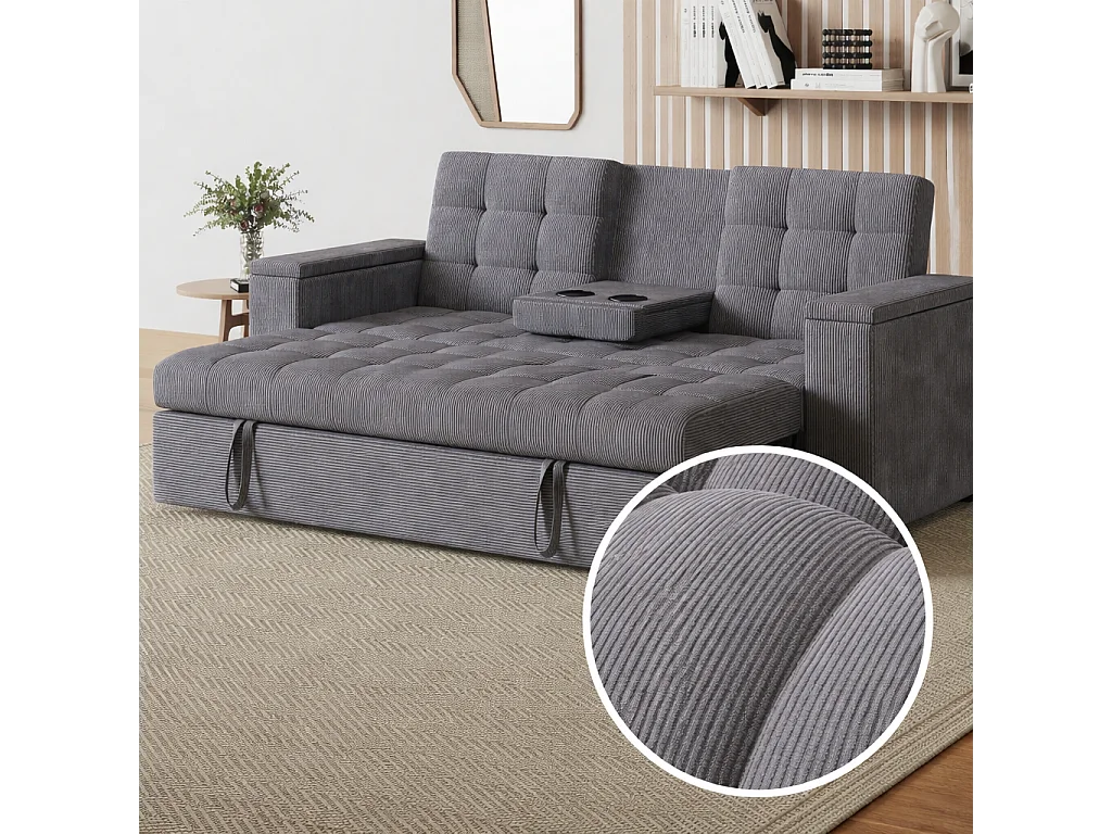 Canapé 3 places convertible gris velours côtelé NOHO