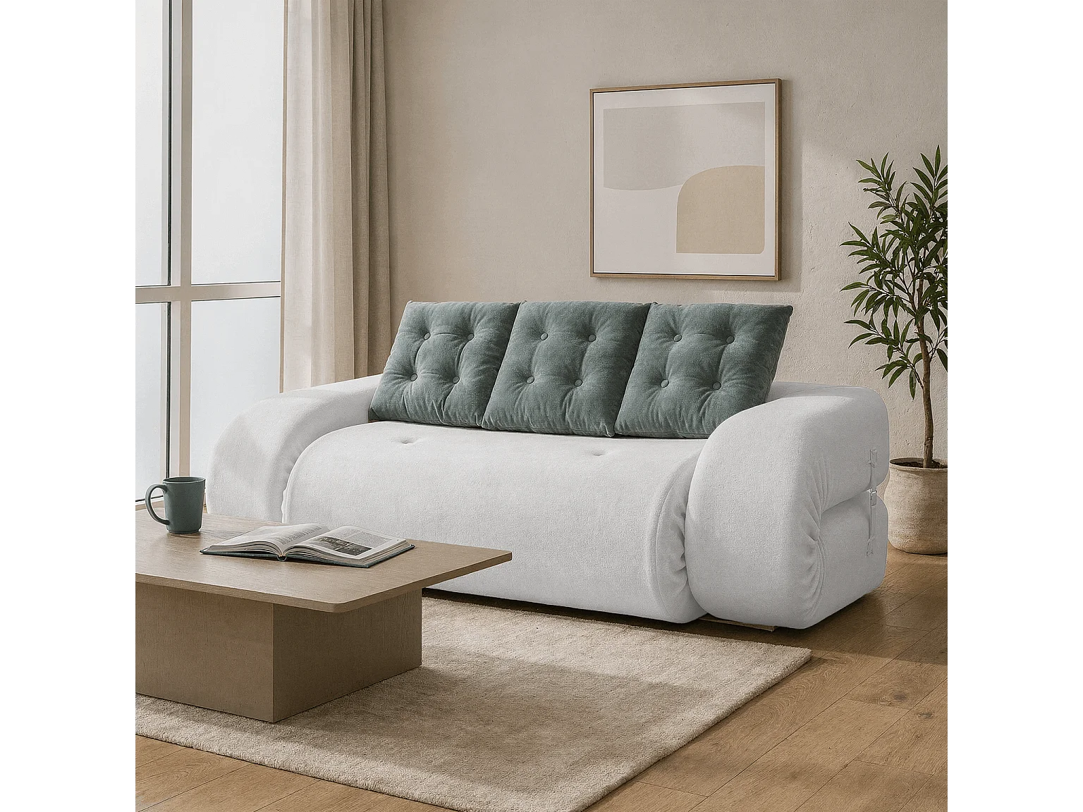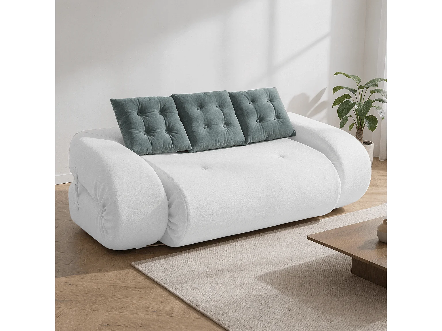 Coco Living Canapé Convertible Okoa 2 places - blanc et sauge
