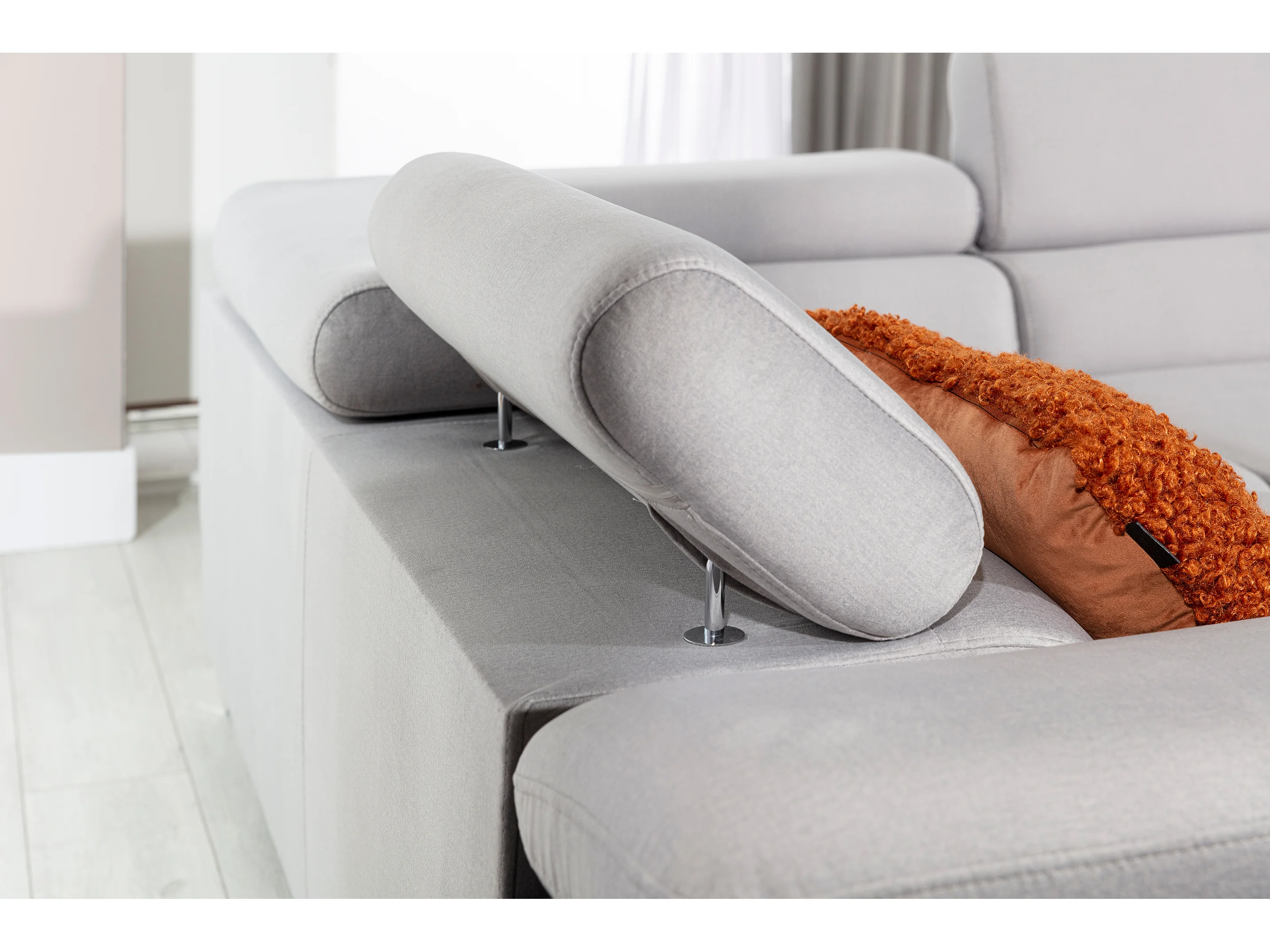 Canapé panoramique convertible LEVANO tissu - Rangement et appuie-têtes réglables-Gris perle-Coffre à droite
