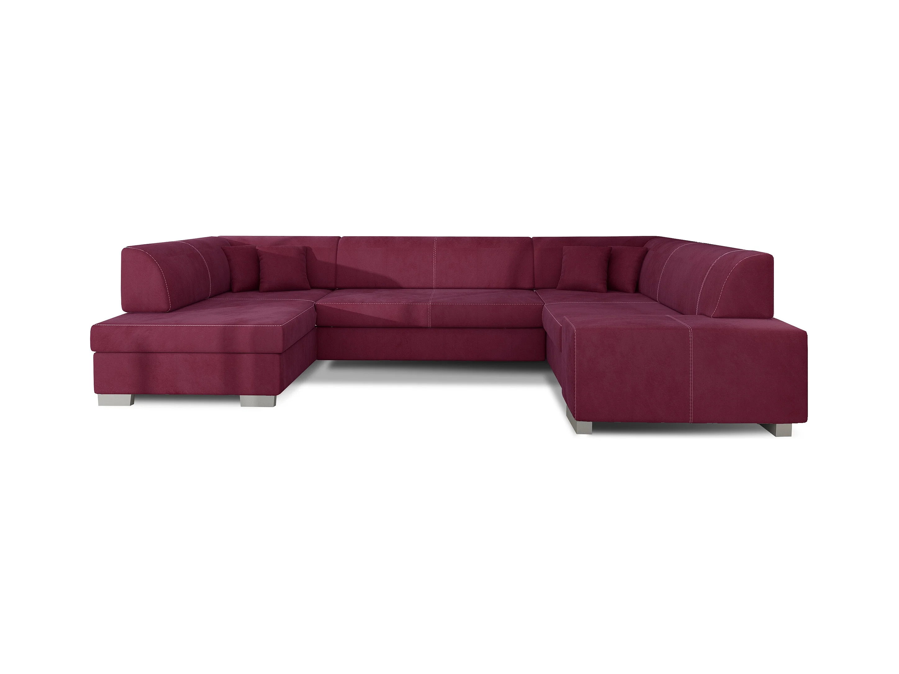 Canapé convertible panoramique velours bordeaux avec coffre de rangement Houston 320cm-Coffre de rangement à droite