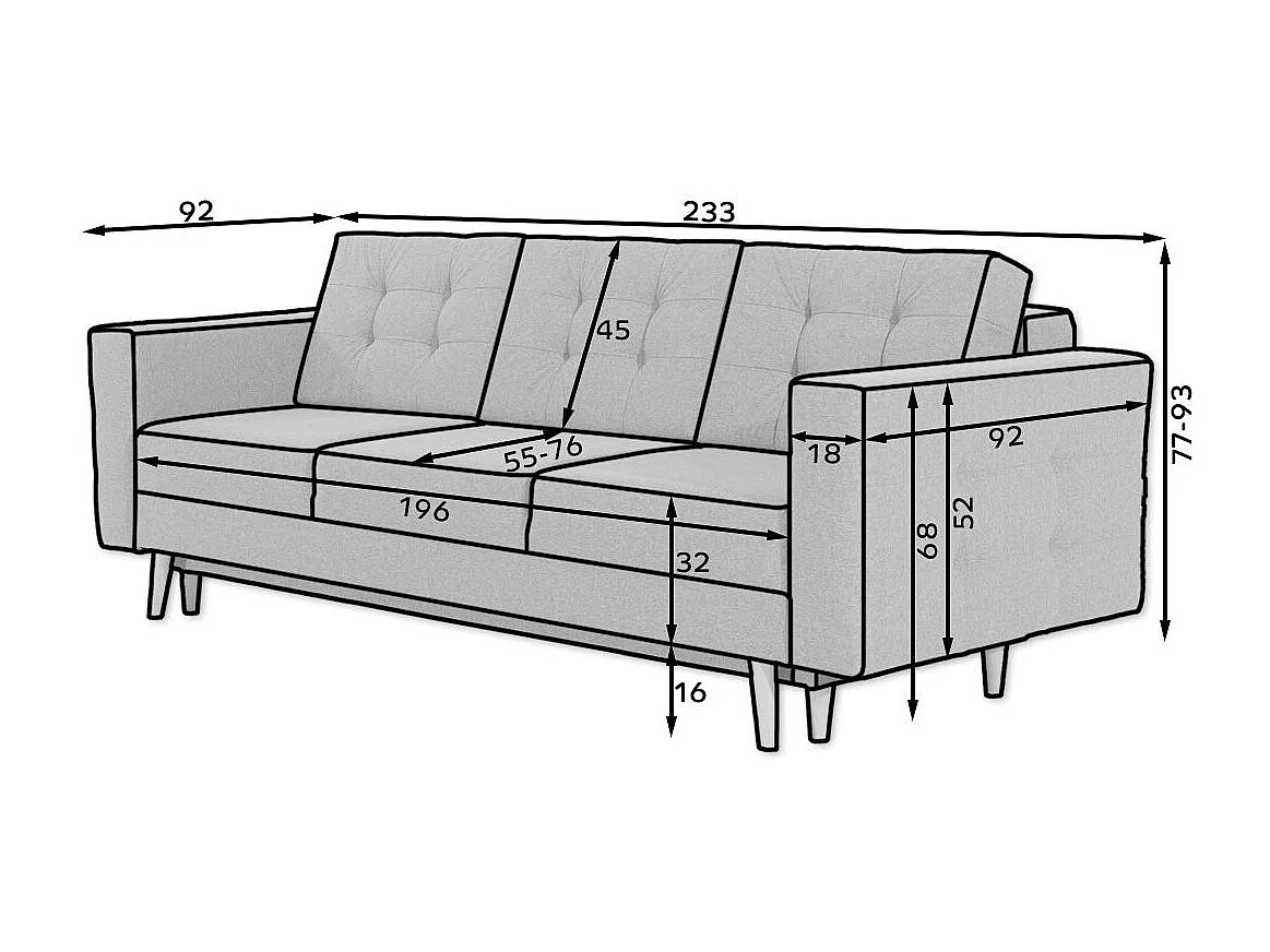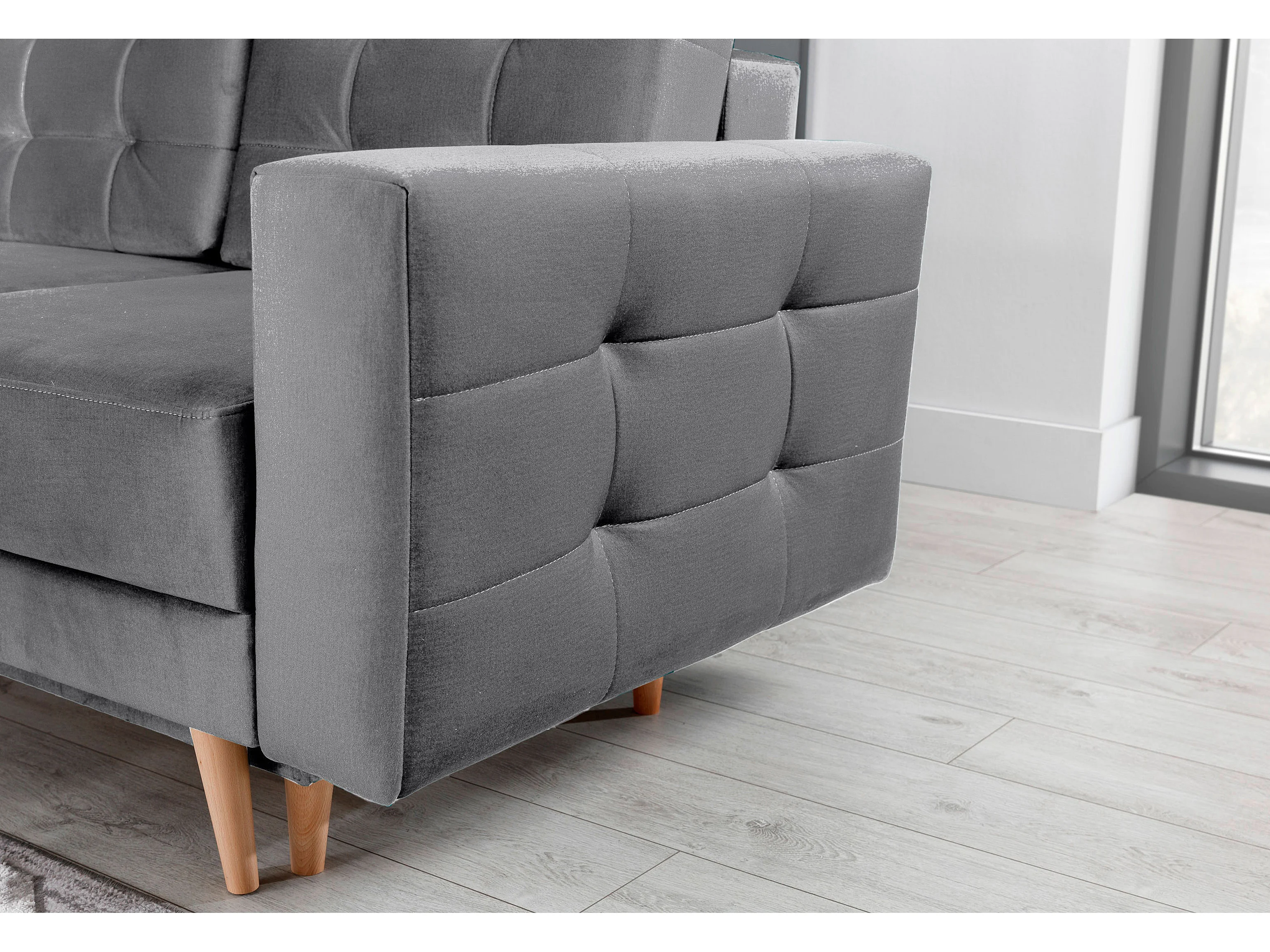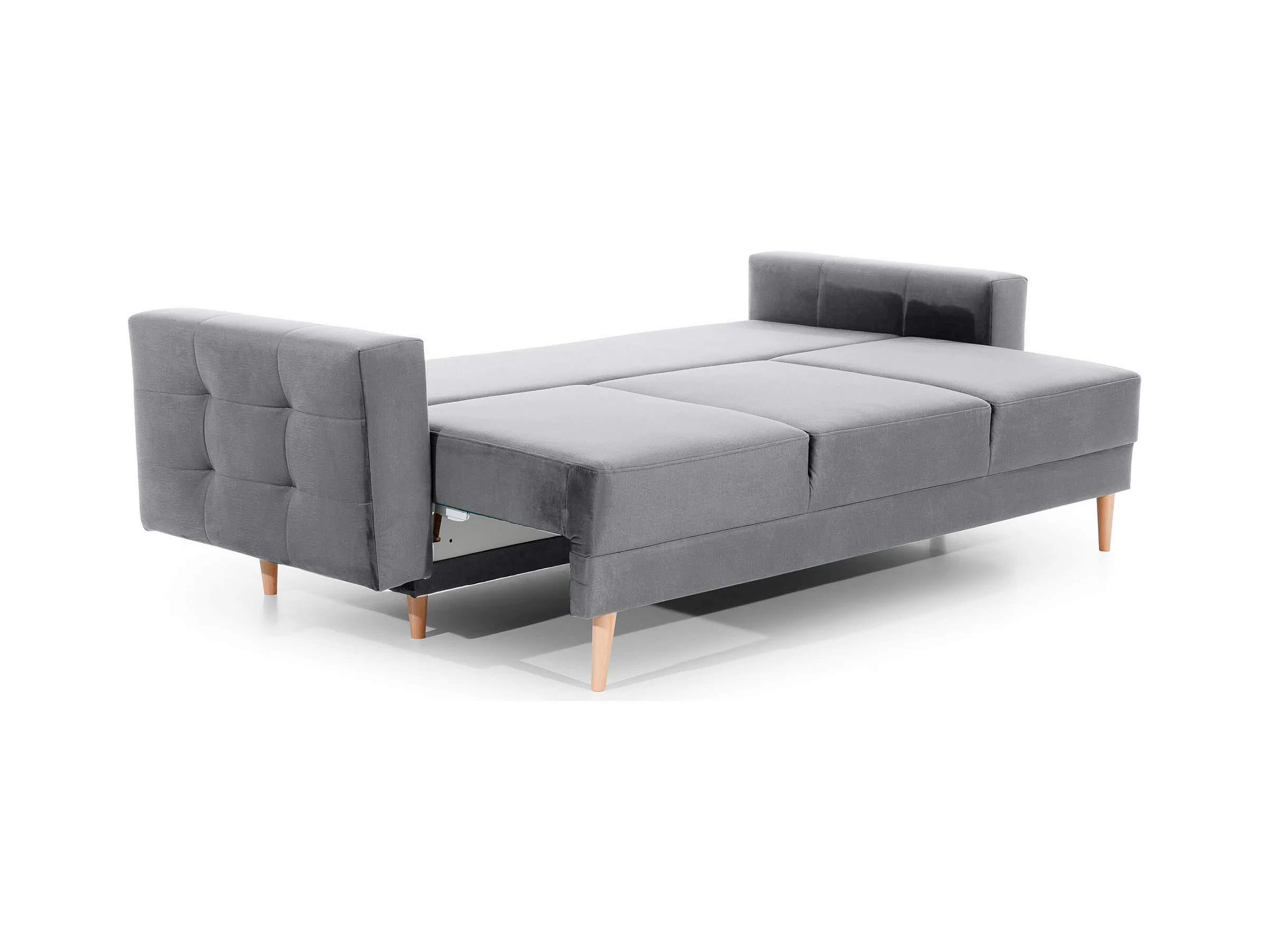 Canapé lit 3 places velours gris foncé et pieds en bois de hêtre Saline 216cm