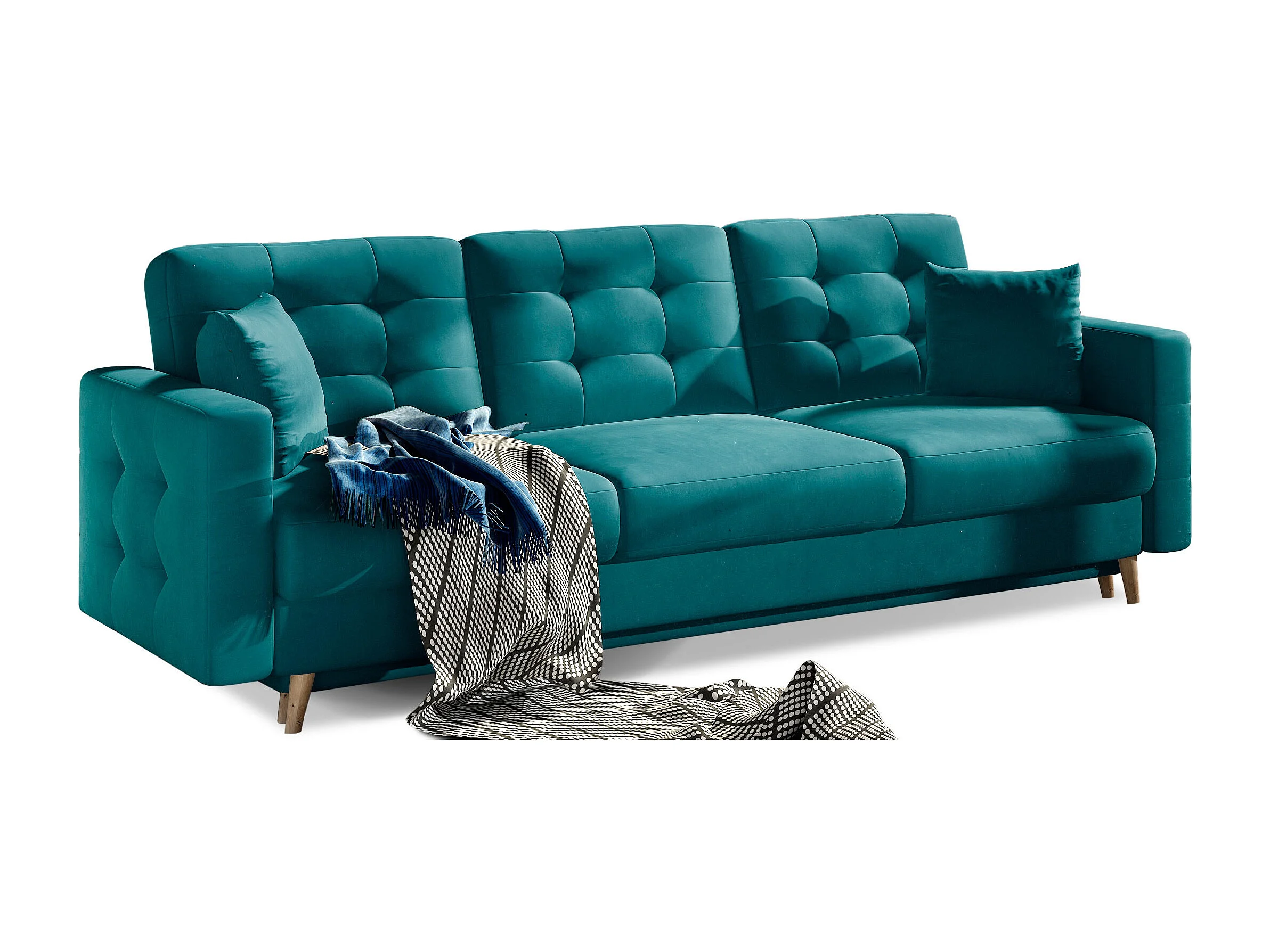 Canapé 3 places convertible matelassé velours bleu canard Anska 235cm