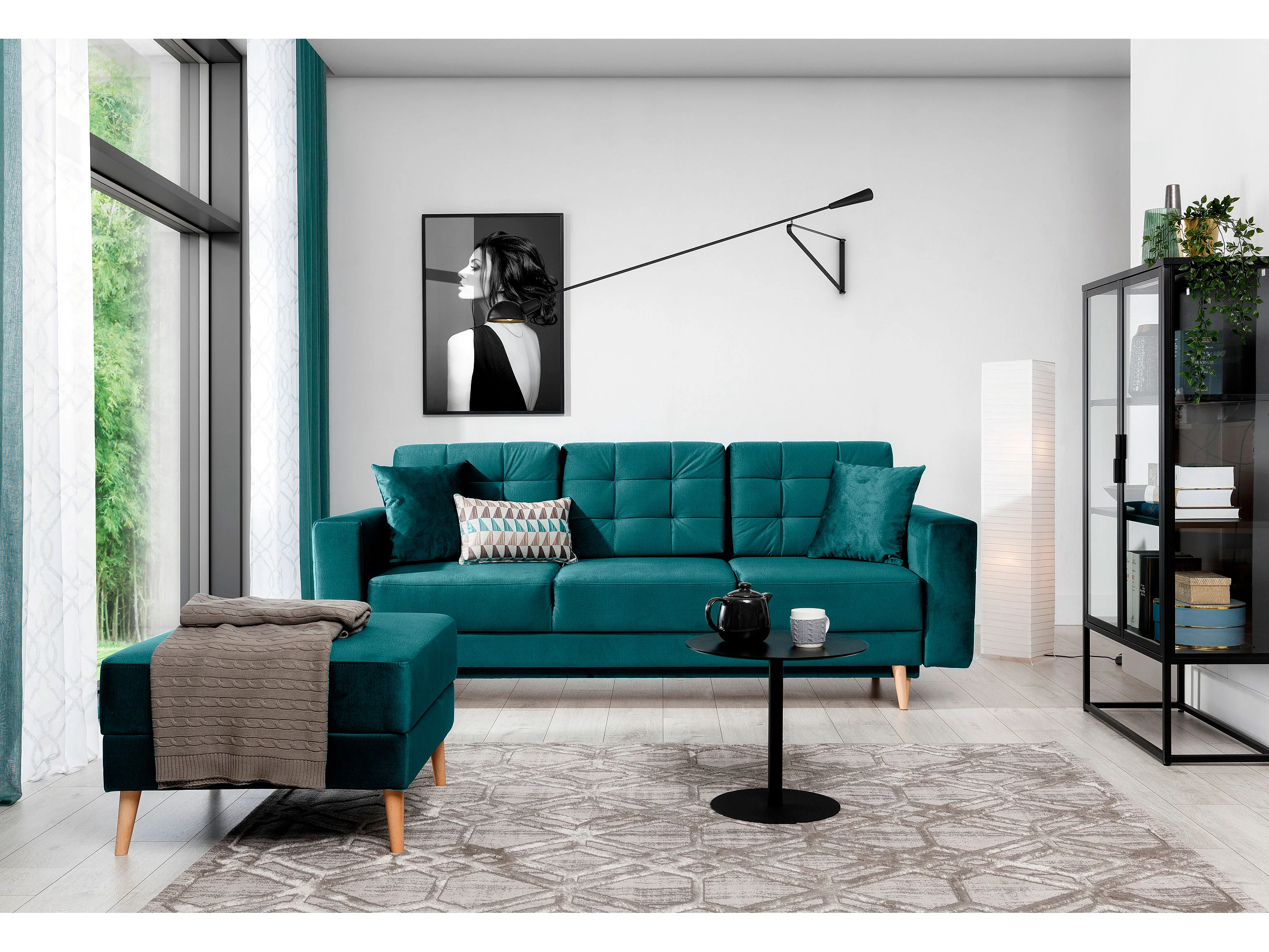 Canapé convertible 3 places velours vert avec coffre de rangement Larko 245cm
