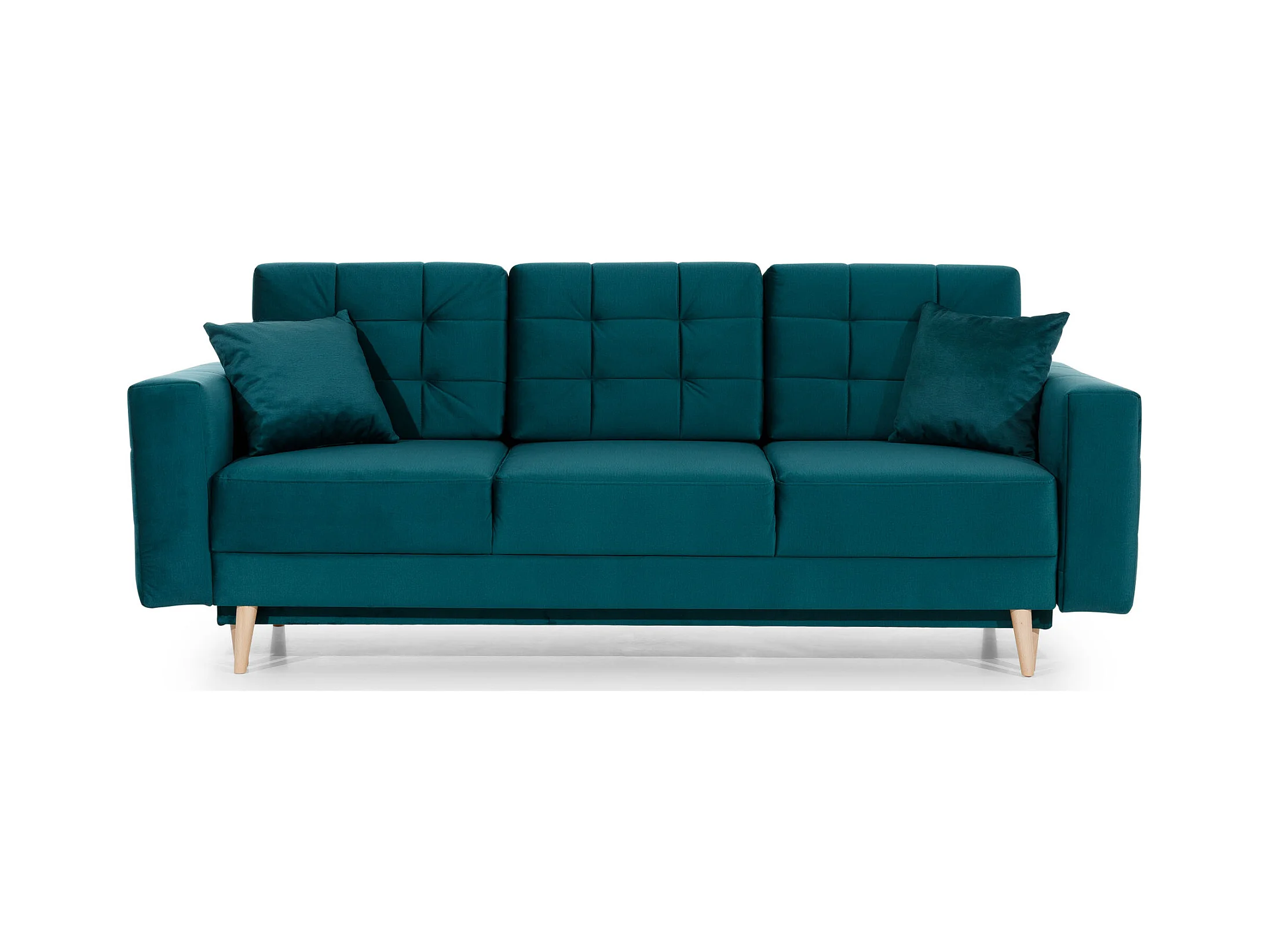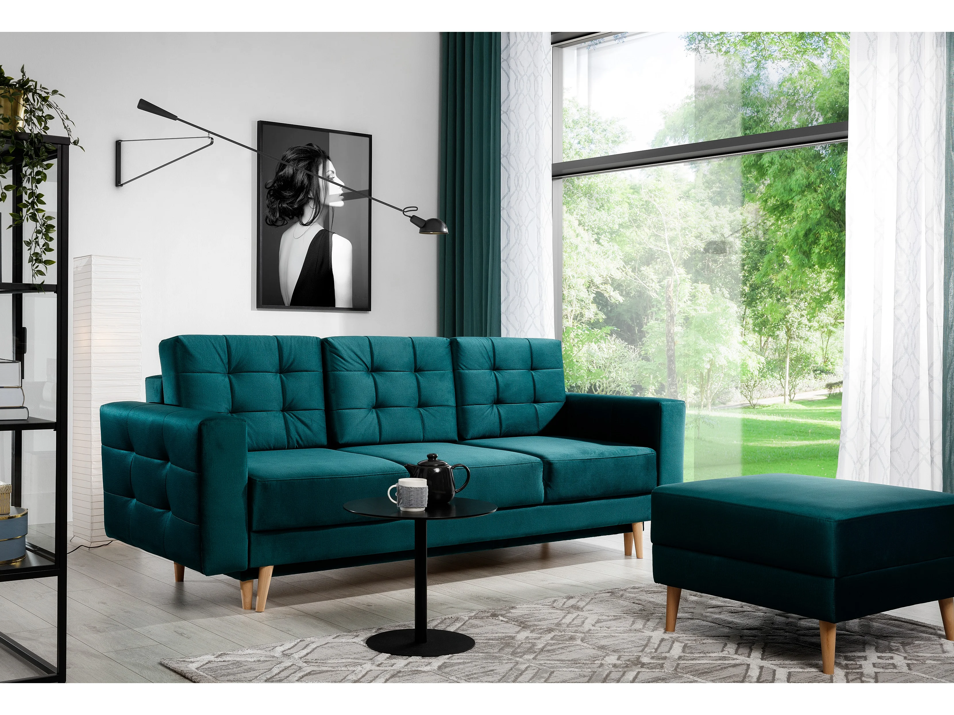 Canapé 3 places convertible matelassé velours bleu canard Anska 235cm