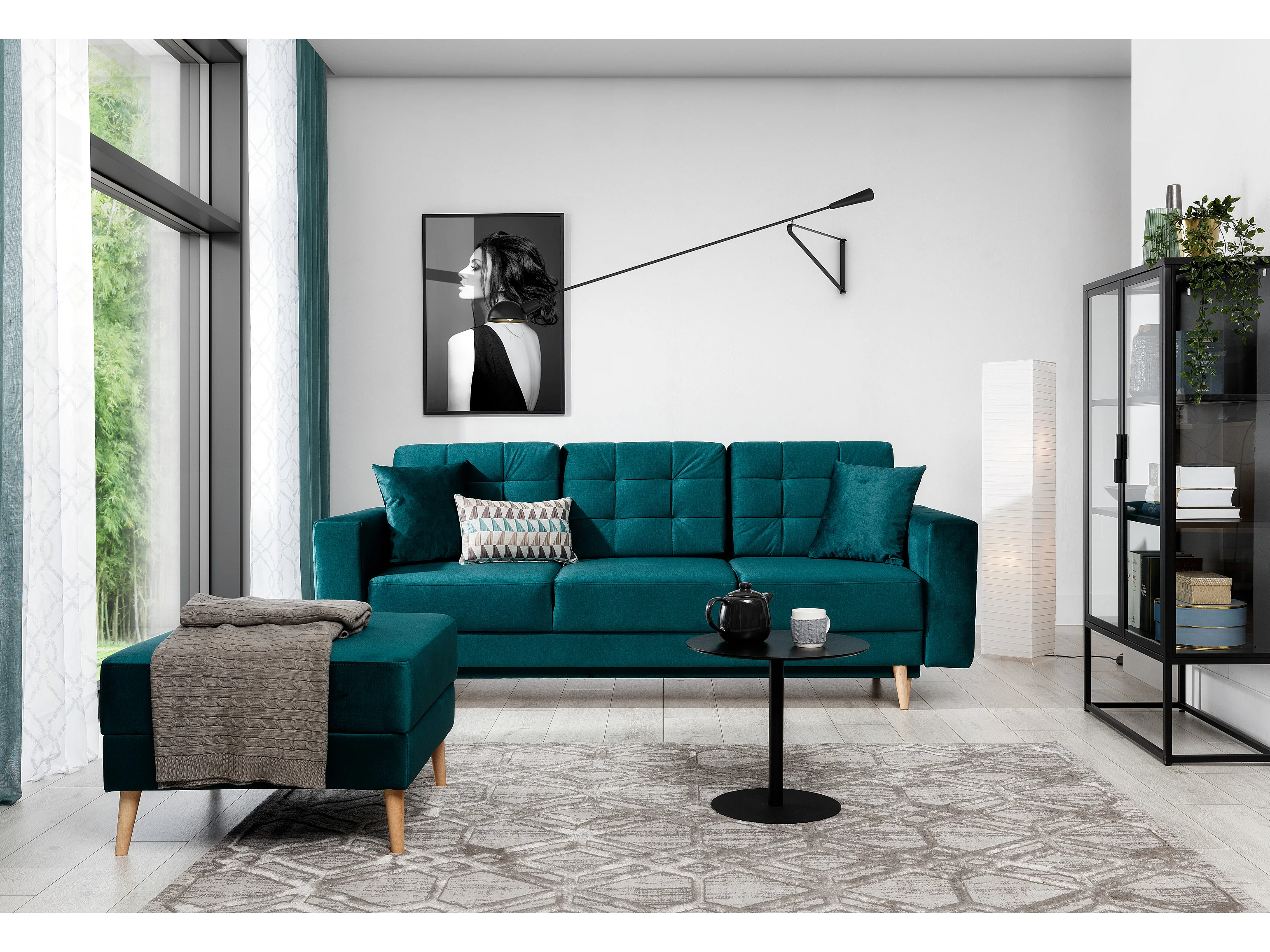 Cosmopolitan Design - Canapé convertible avec coffre de rangement "Kyoto" 3 places en velours pétrole - 235x100x88cm
