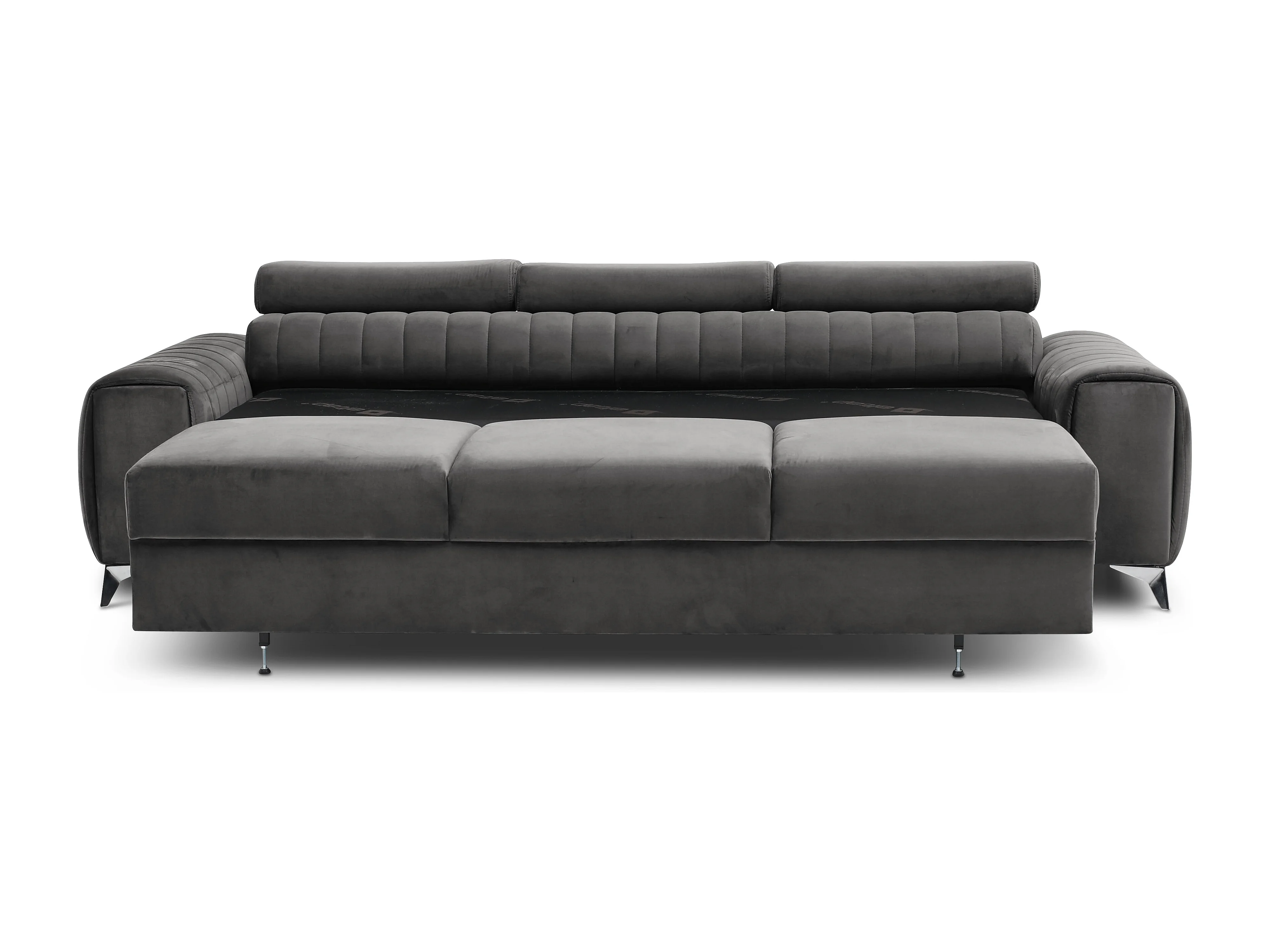 Canapé convertible velours LOZA - Appuis-tête réglables et pieds acier chromé-Gris anthracite