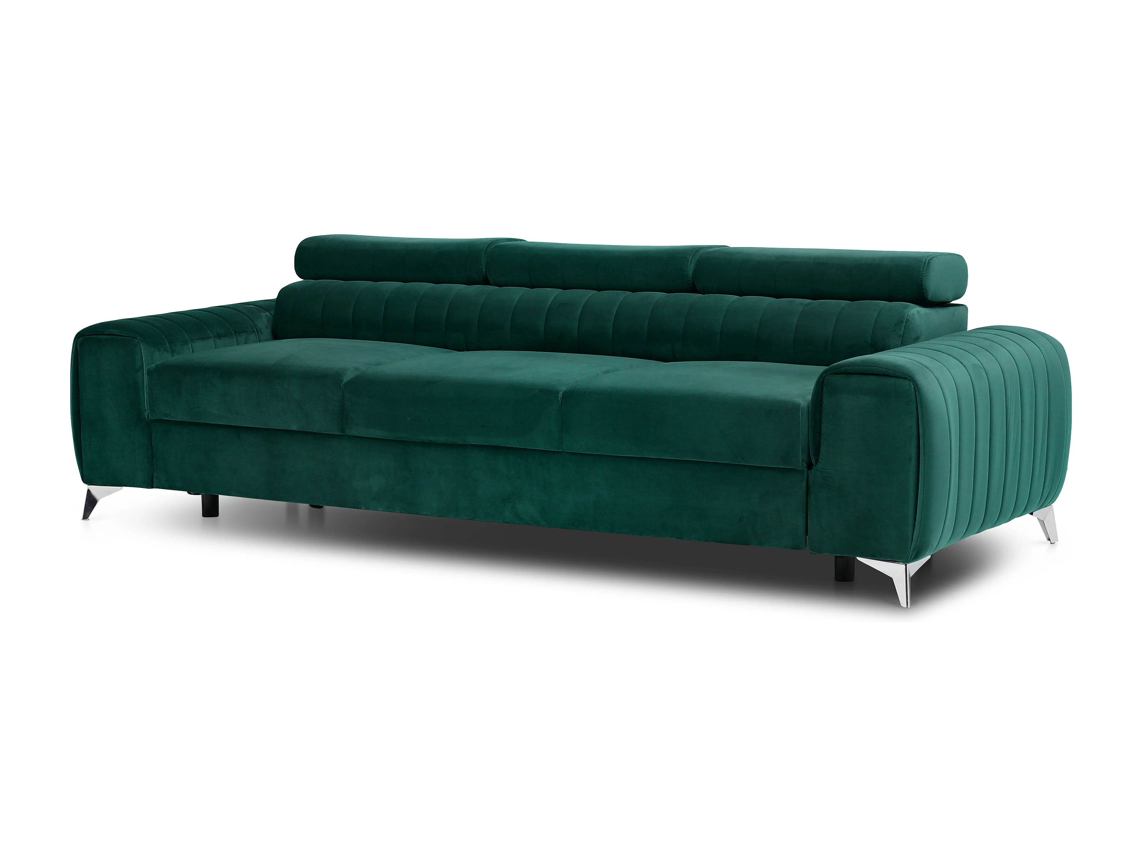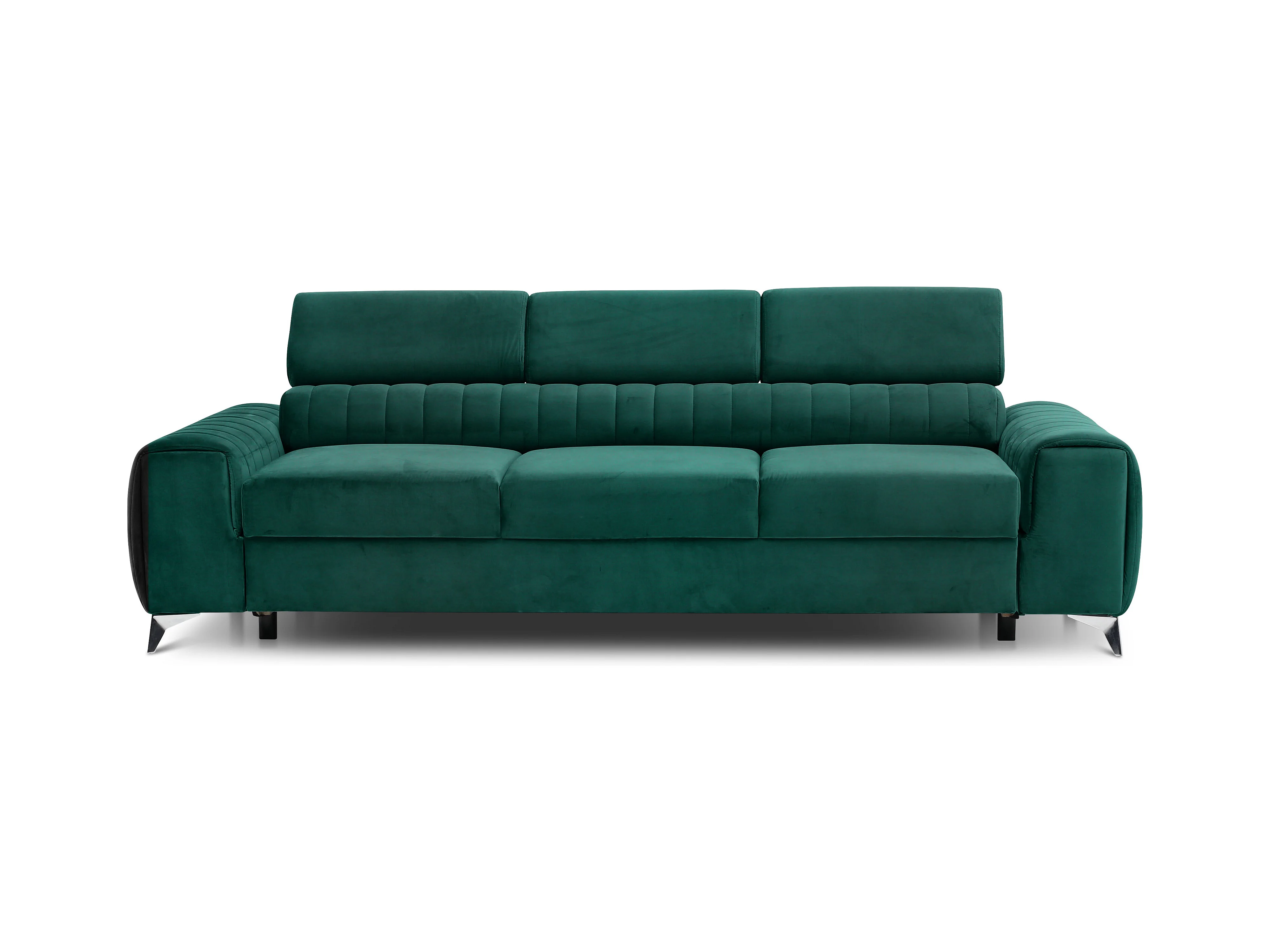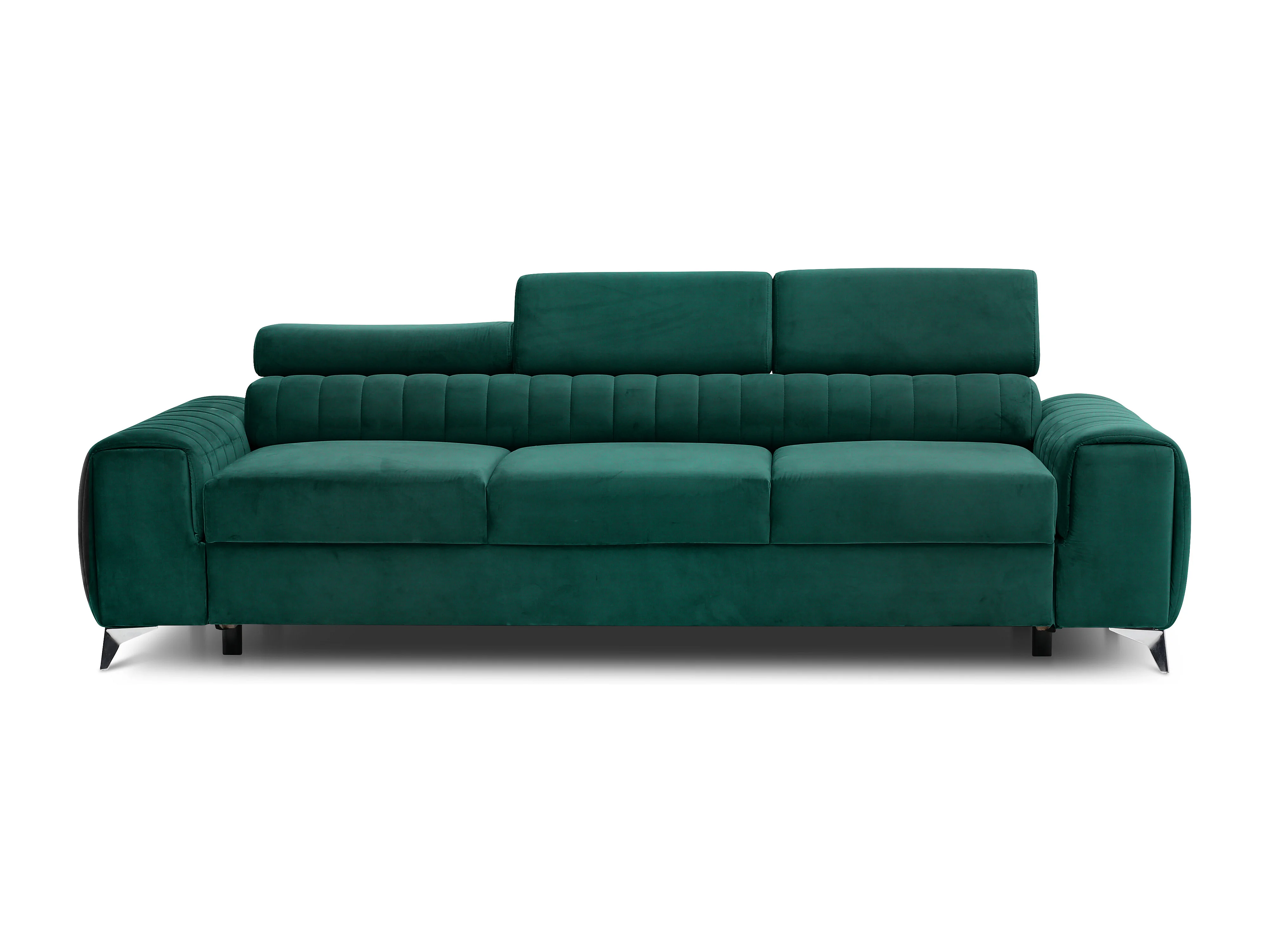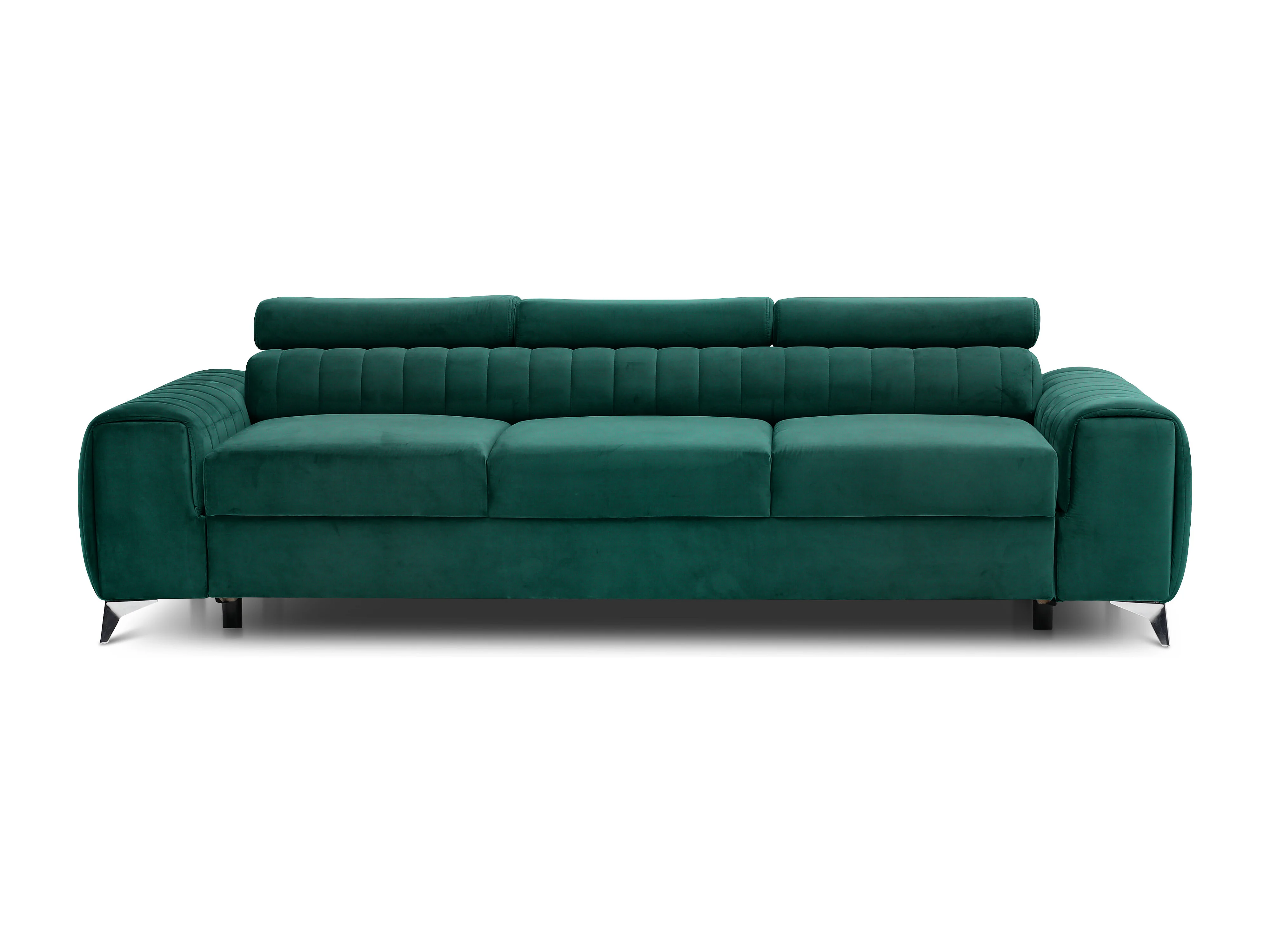 Canapé convertible velours LOZA - Appuis-tête réglables et pieds acier chromé-Vert