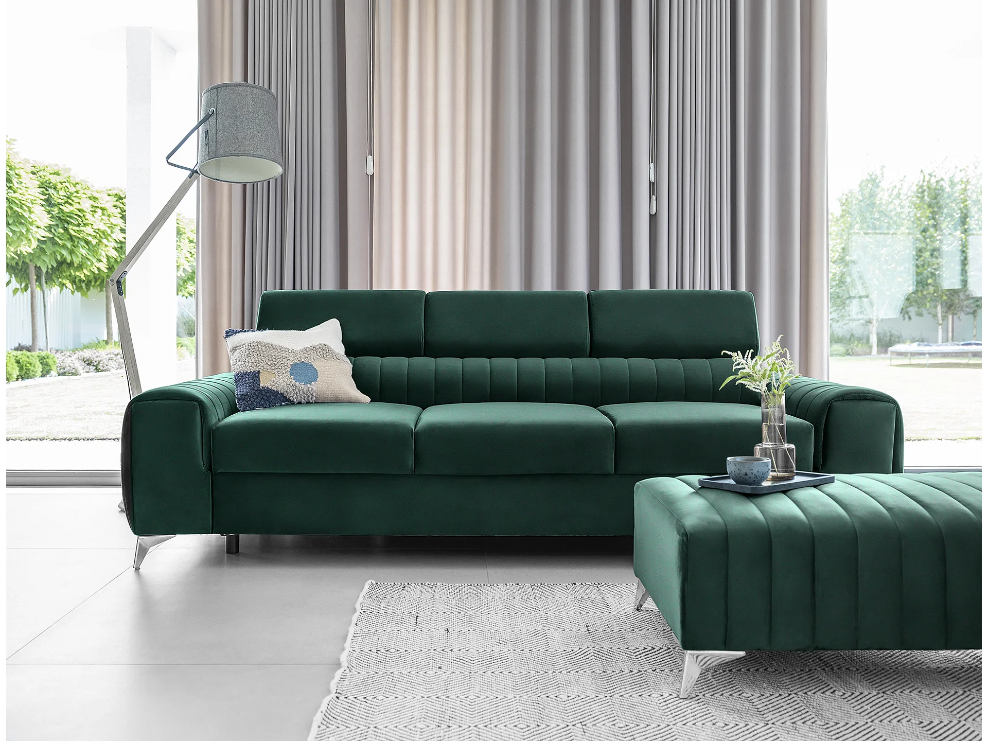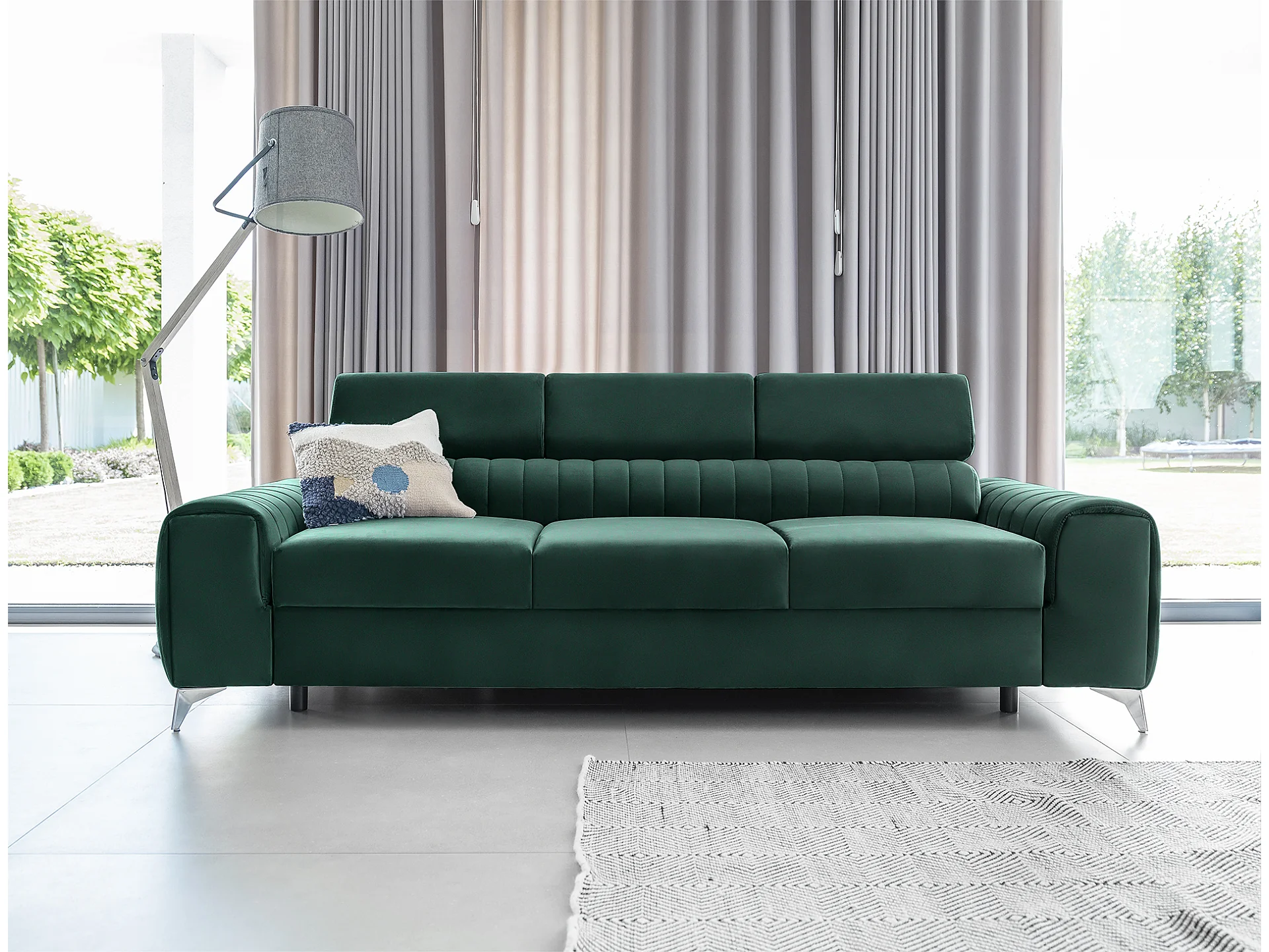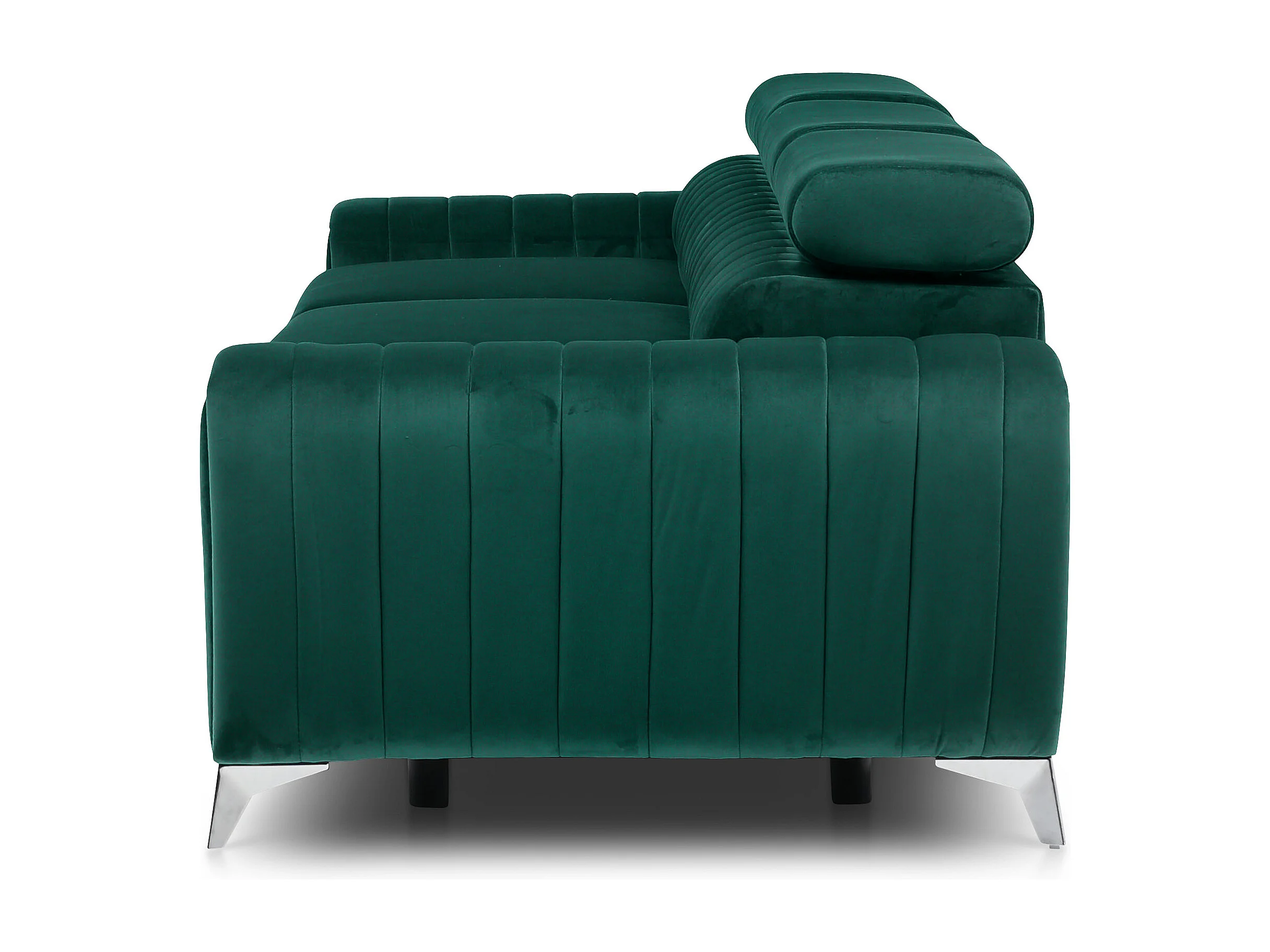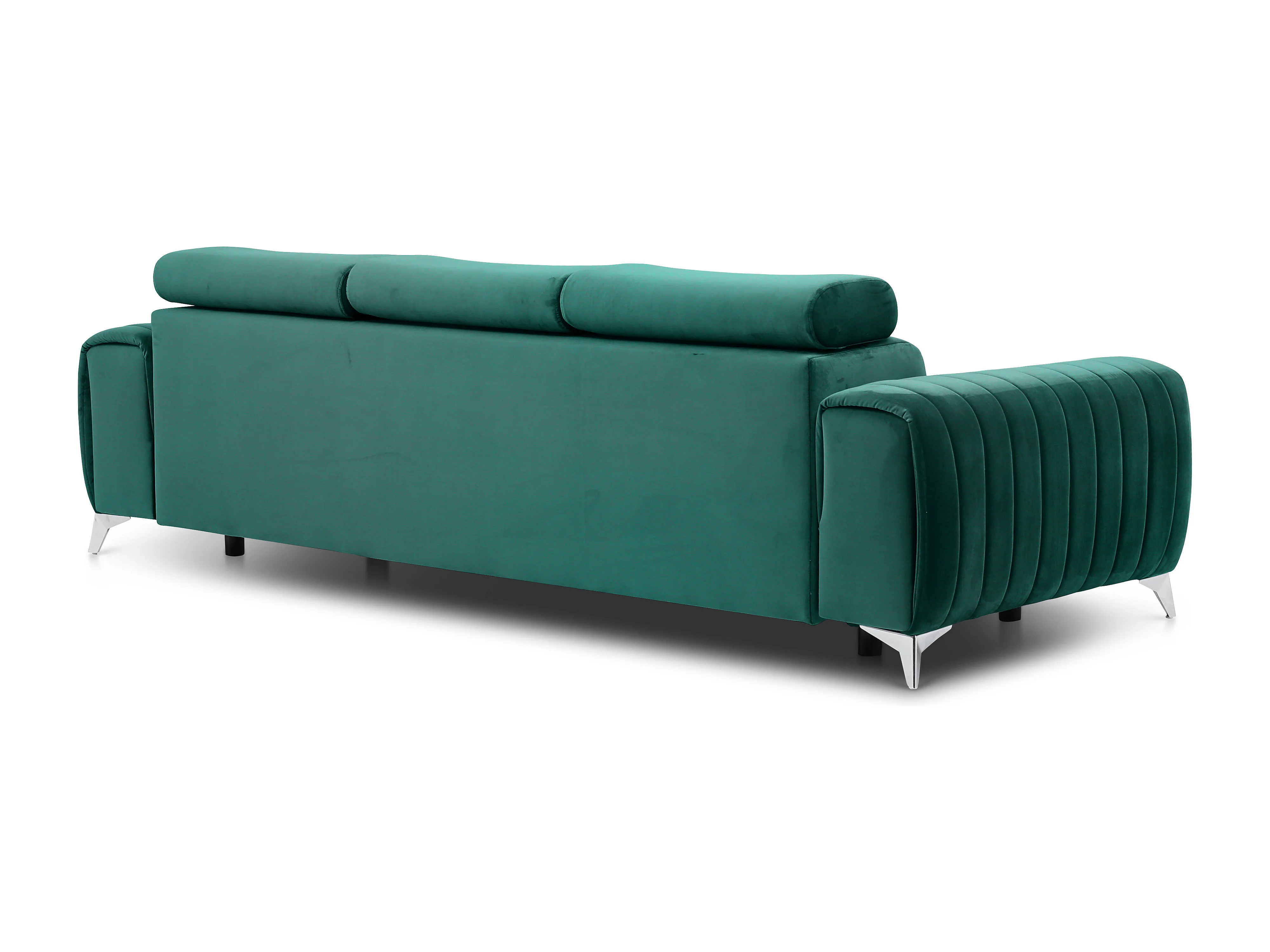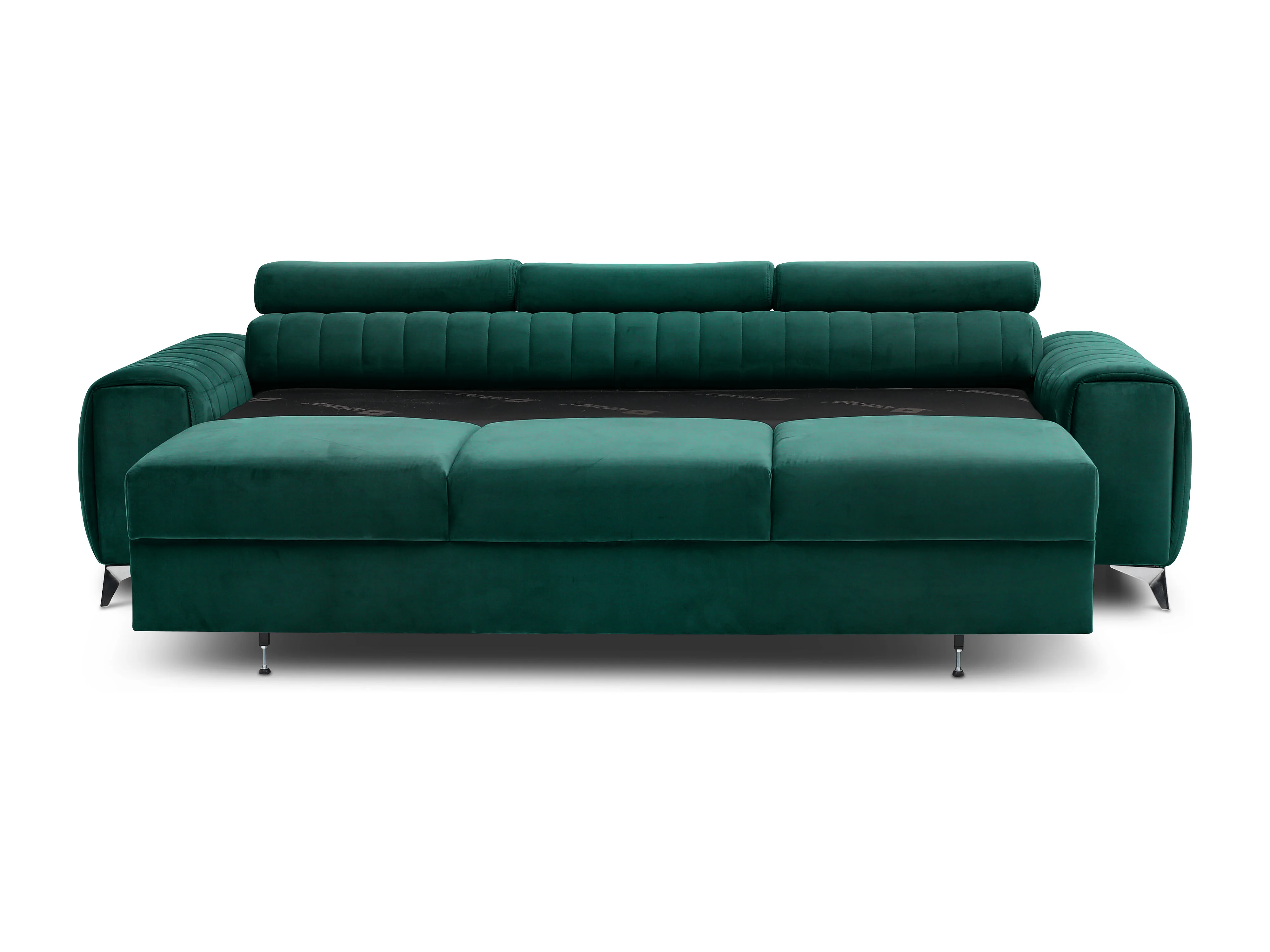 Canapé convertible velours LOZA - Appuis-tête réglables et pieds acier chromé-Vert