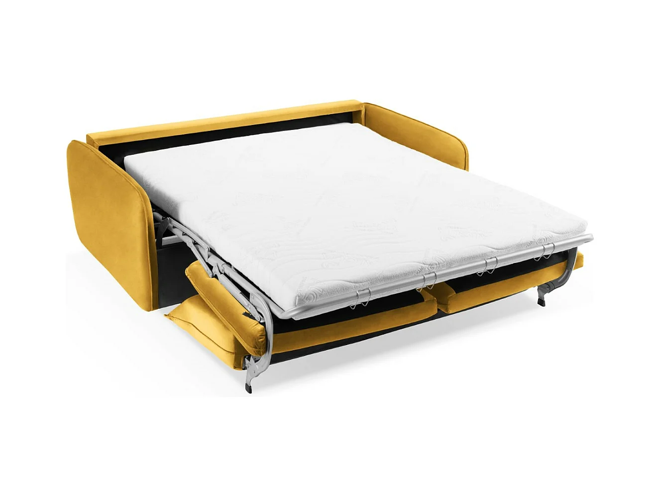 Canapé lit 3 places velours moutarde et pieds en bois de hêtre Saline 216cm