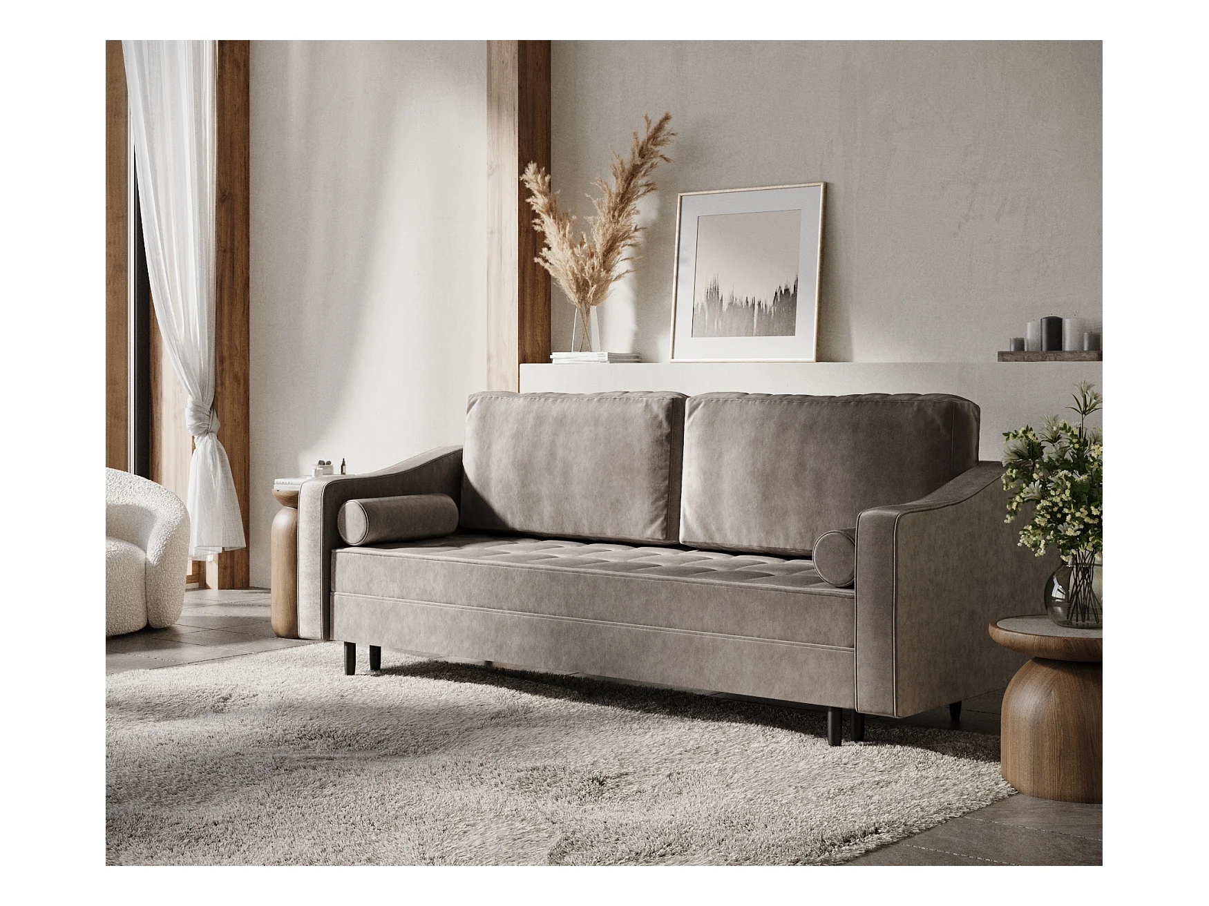 Canapé convertible Mitsis - toile tissée - 3 places - brun claire
