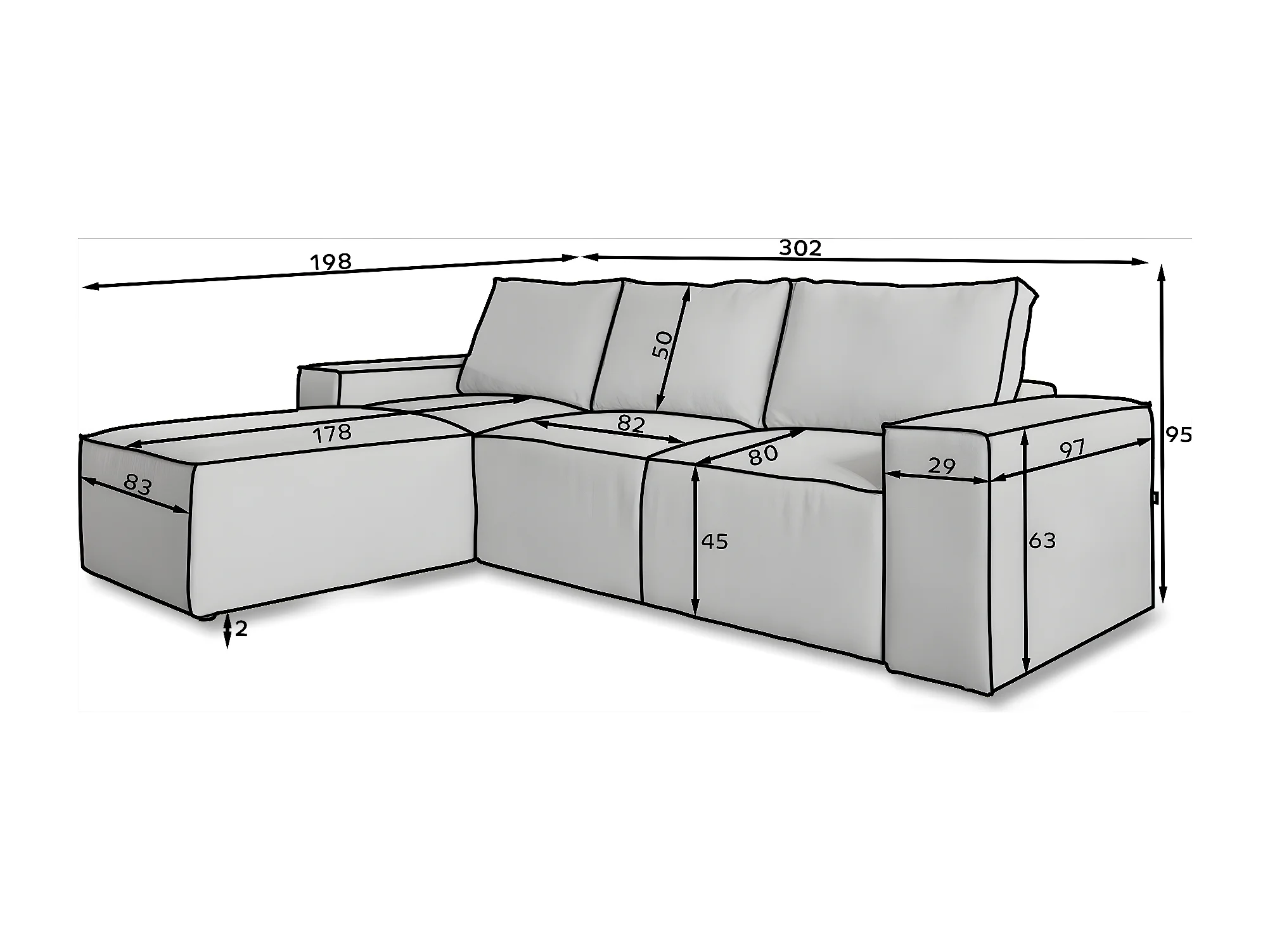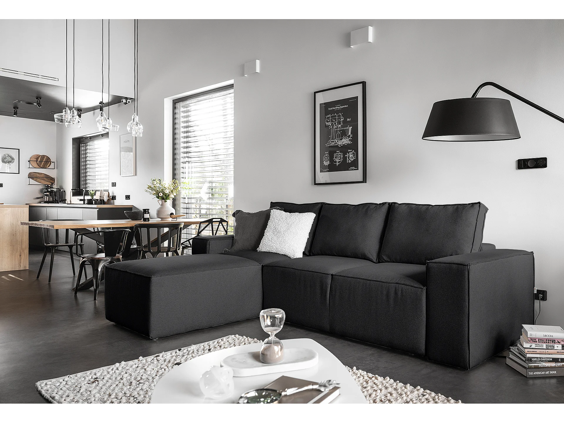 Canapé Corner Nalia L/Tissu-Noir