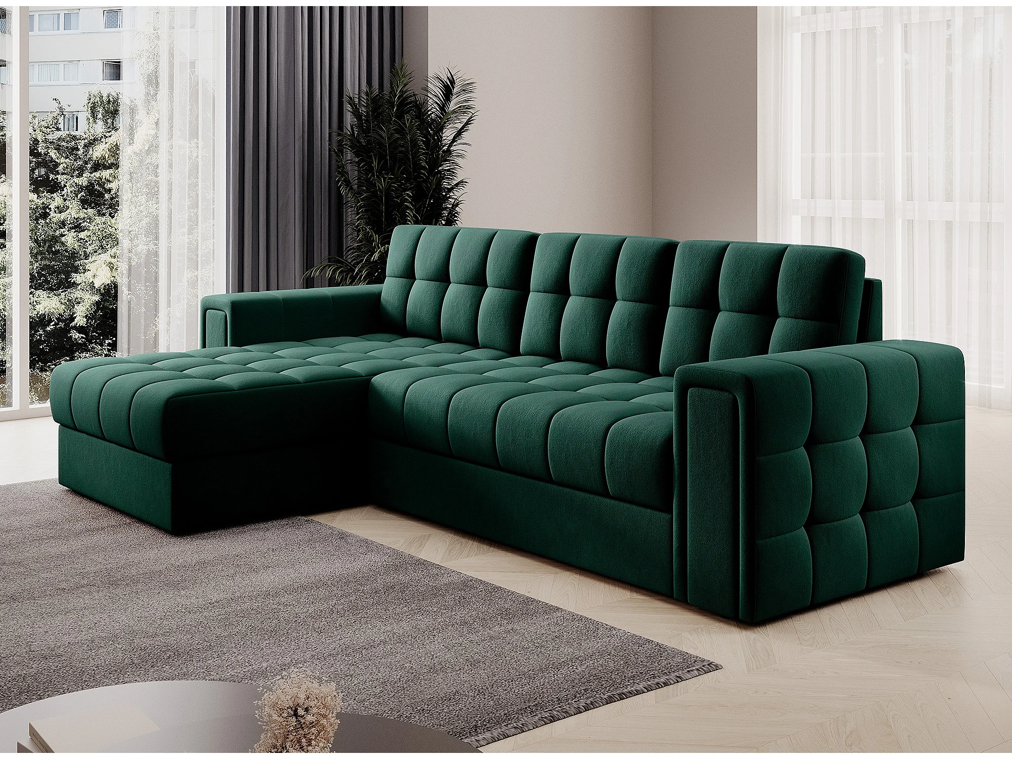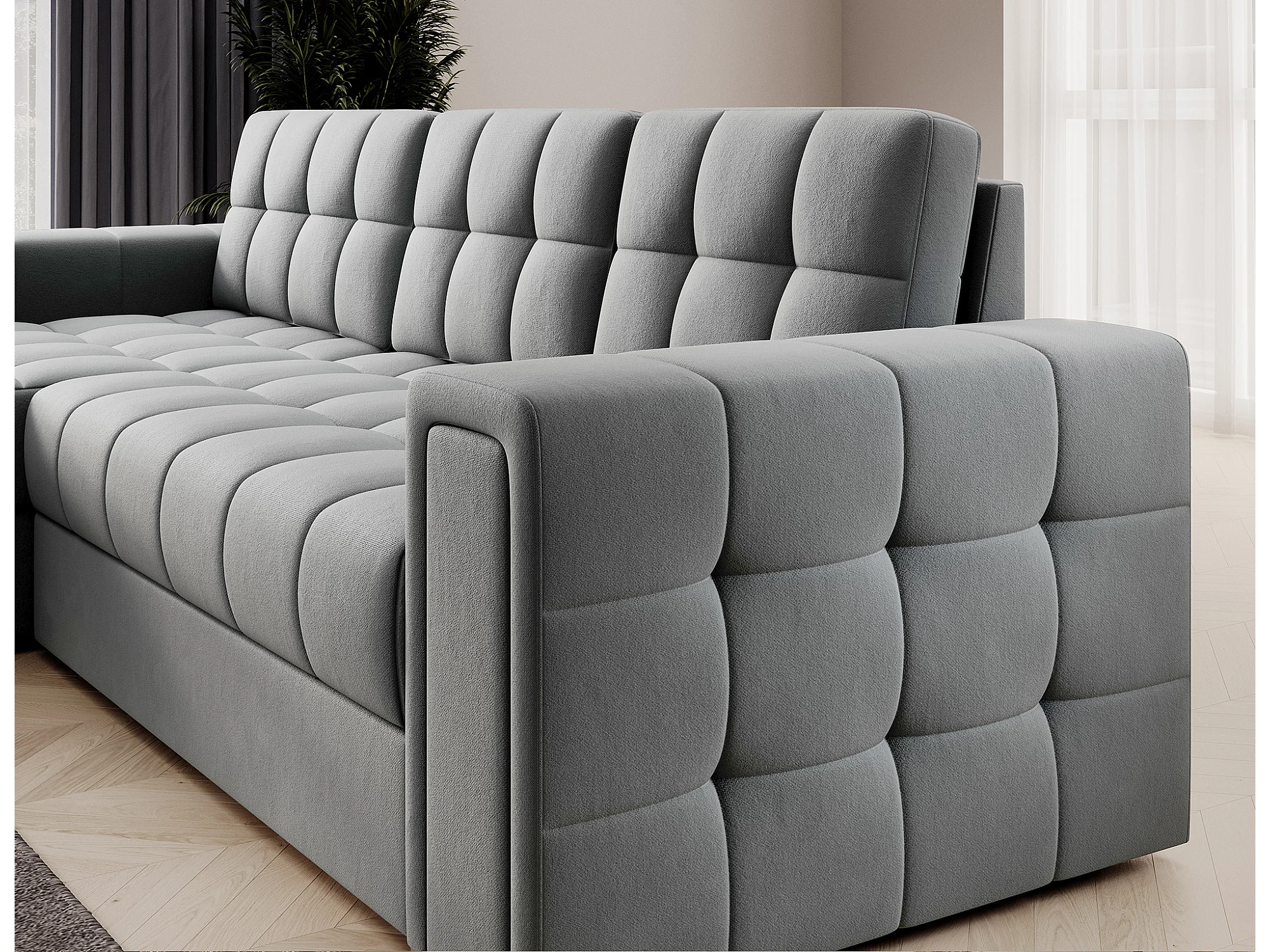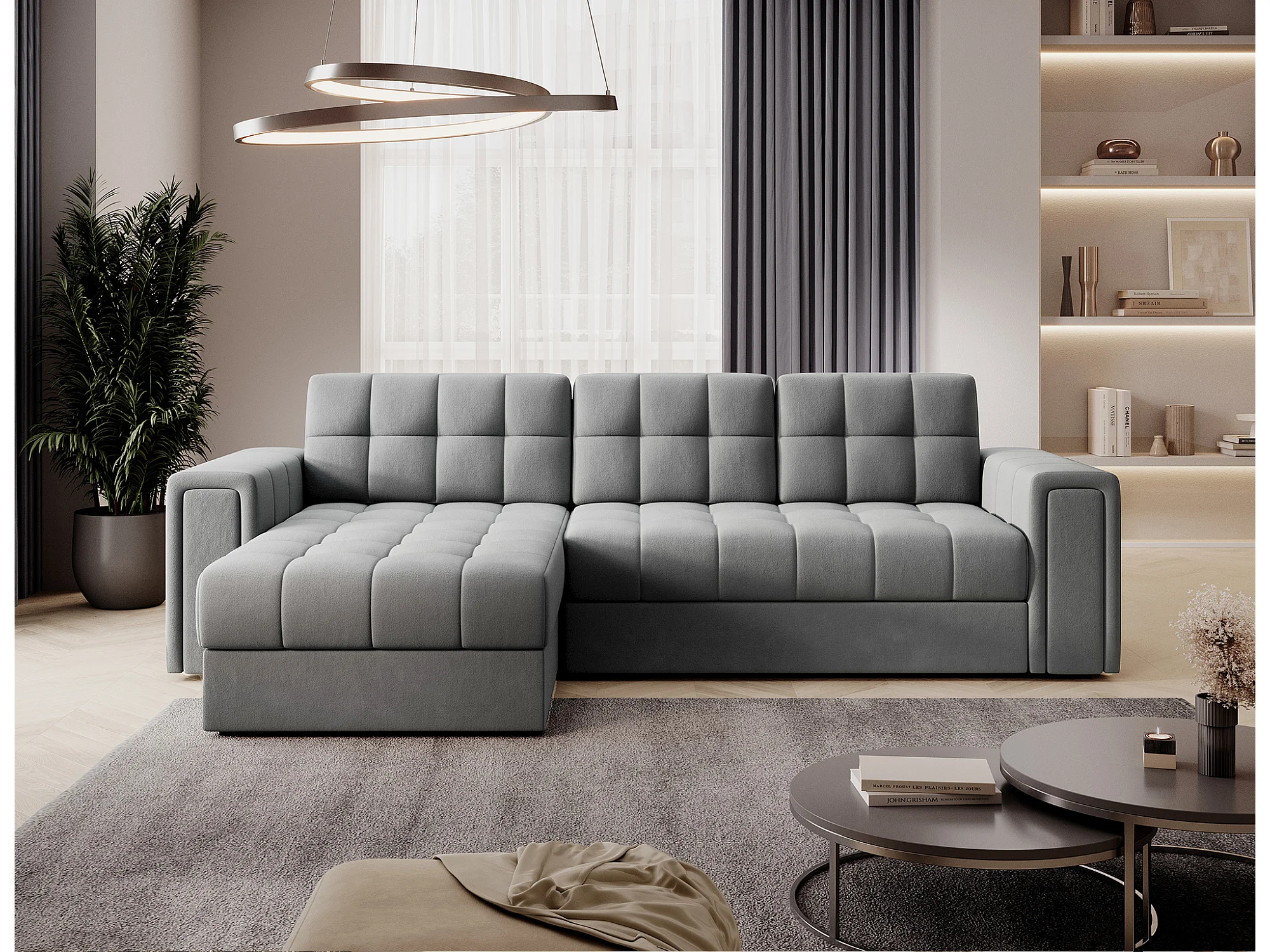 Canapé d’angle velours reversible et convertible Klumann – Élégance et praticité-Gris clair