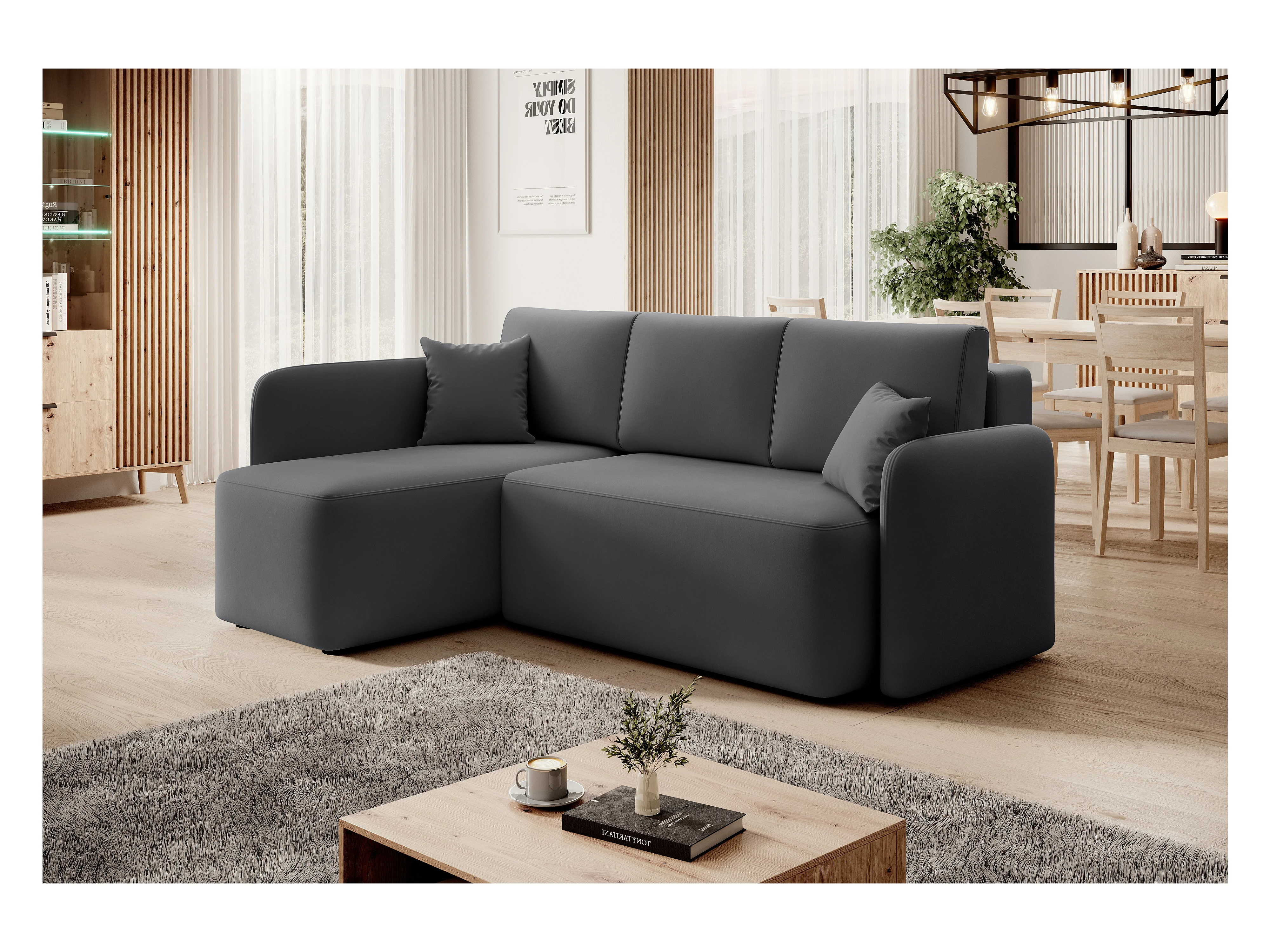 Petit canapé d'angle convertible 3 places tissu TAKIN 206cm-Gris foncé-angle gauche