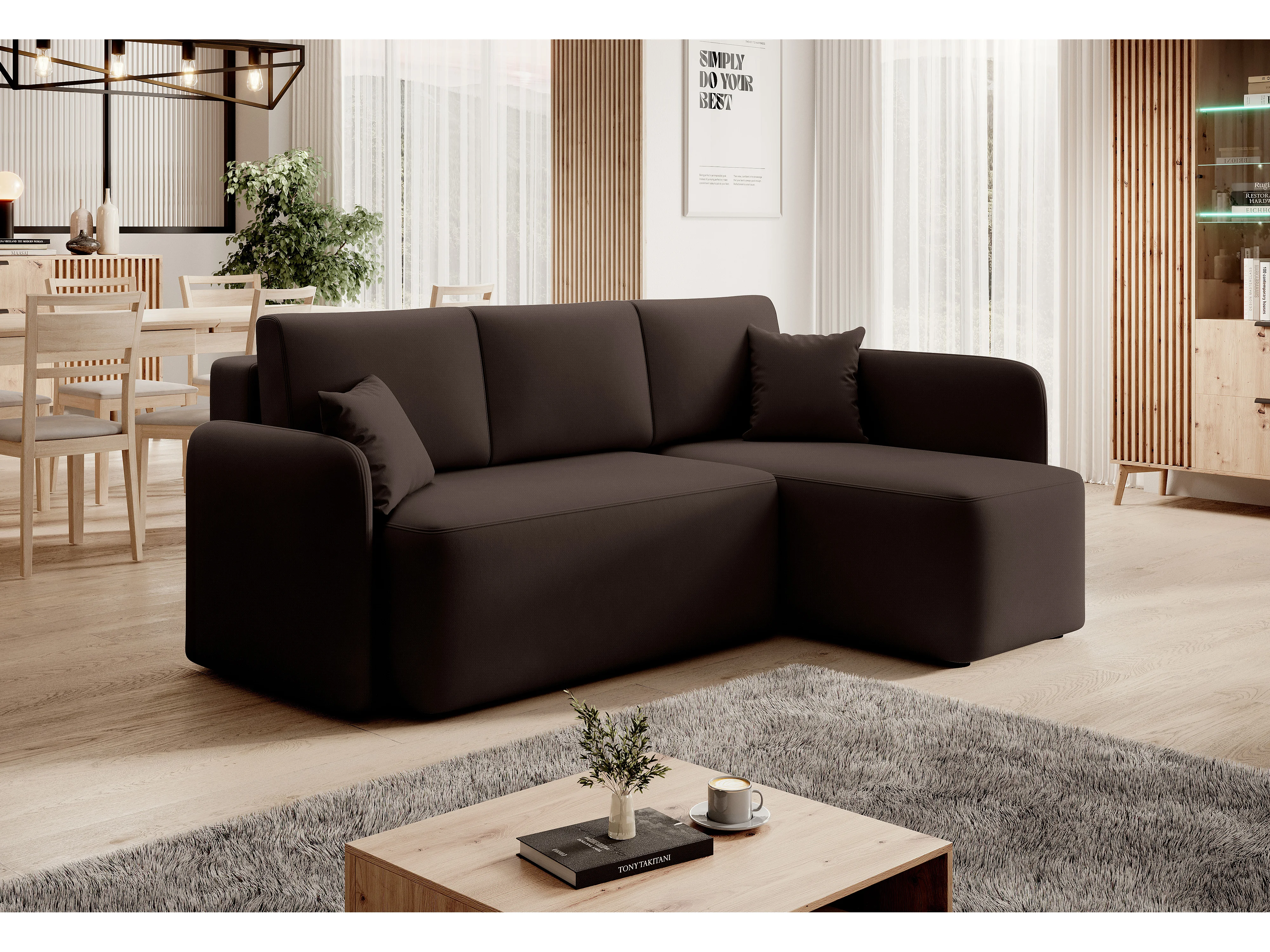 Petit canapé d'angle convertible 3 places tissu marron Takin 206cm-Méridienne A gauche