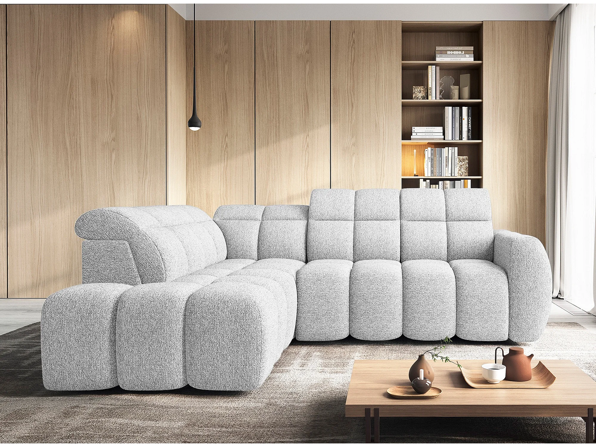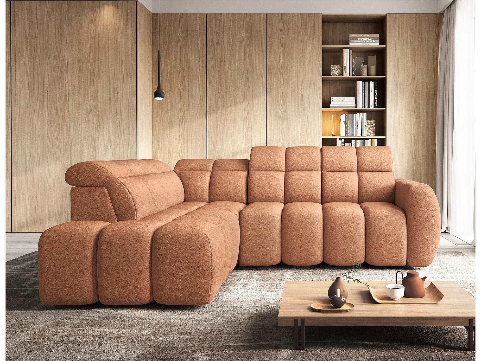Canapé d’angle convertible 4 places tissu BOBOON 258cm – Coffre de rangement-Orange-angle gauche