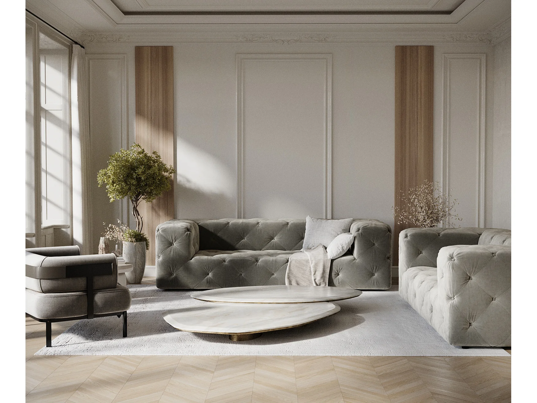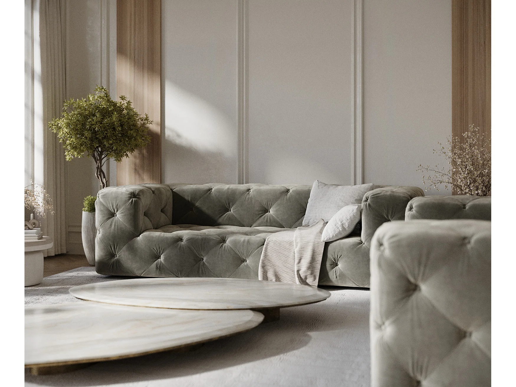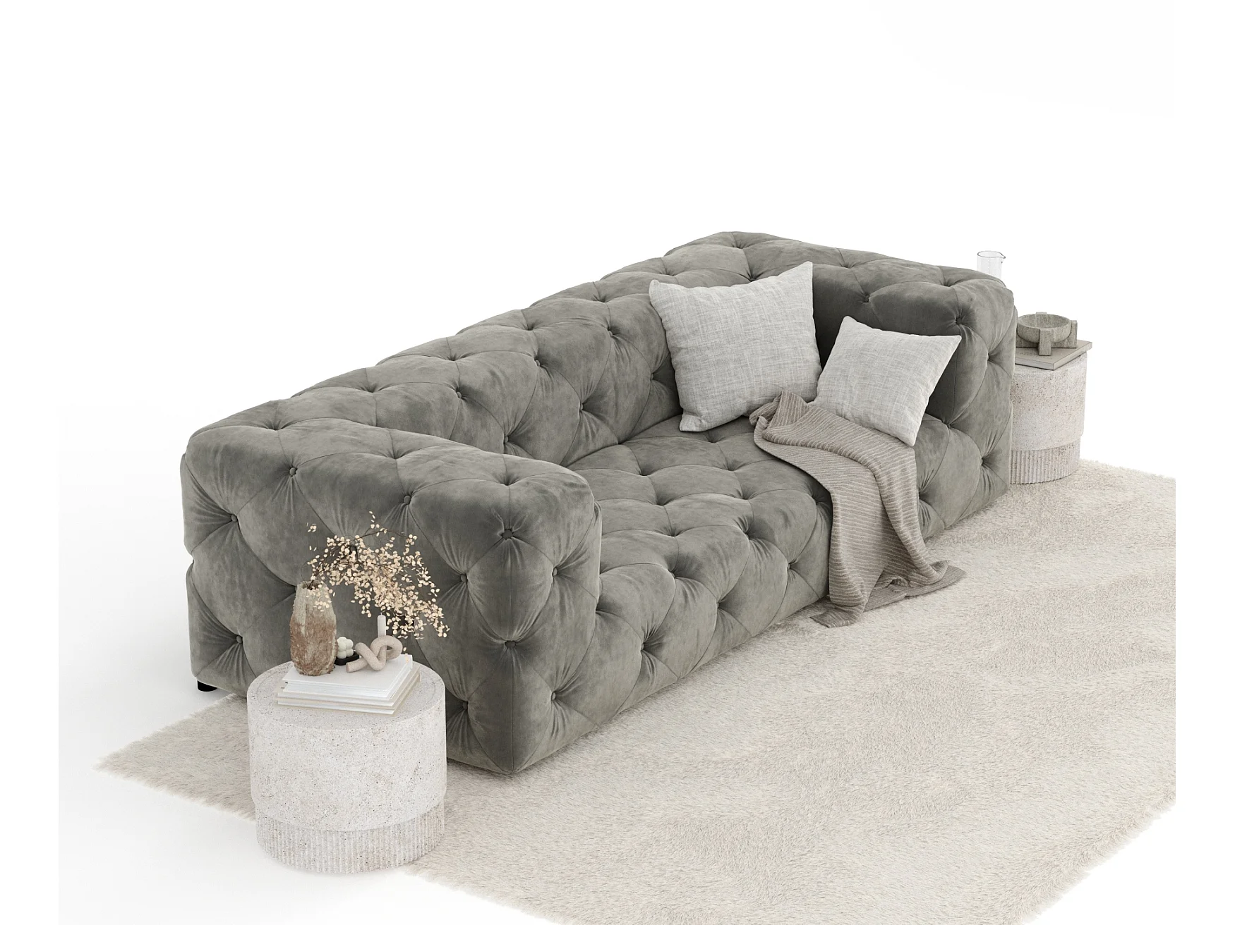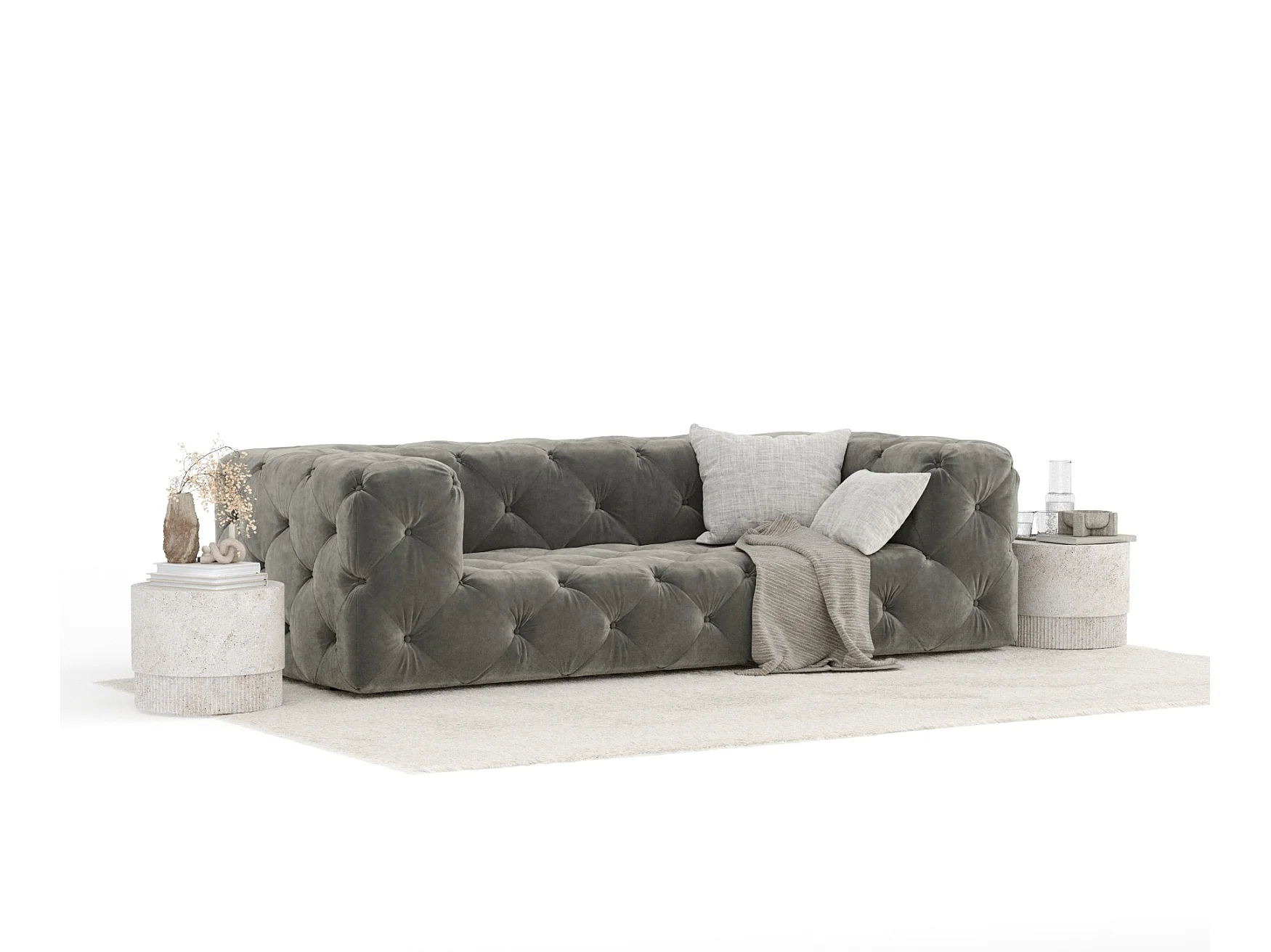 Canapé Cosimo - velours - 3 places - gris