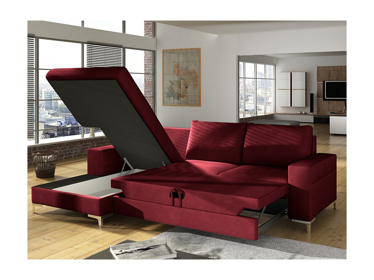 Canapé d'angle convertible en tissu CHONA - Bordeaux - Angle droit