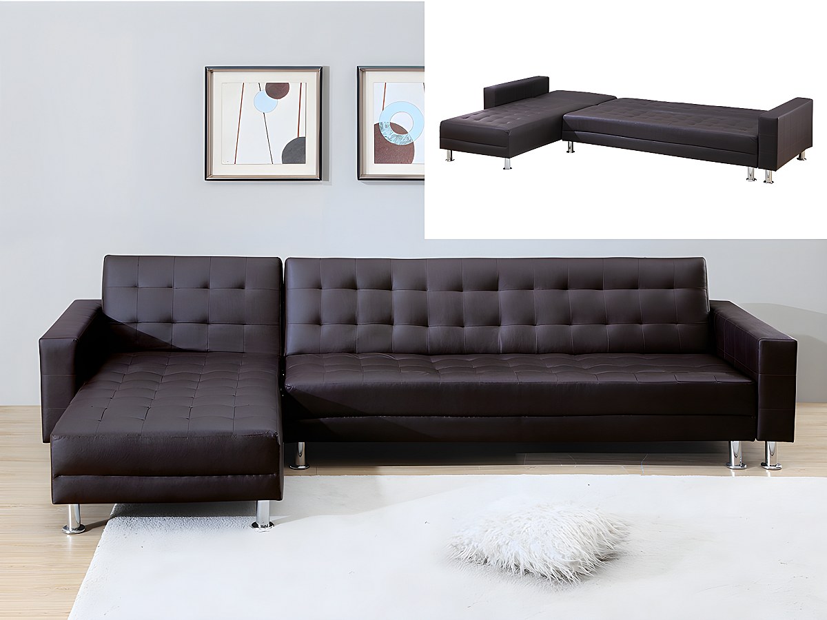 Canapé d'angle convertible et réversible en simili WILLIS - Marron