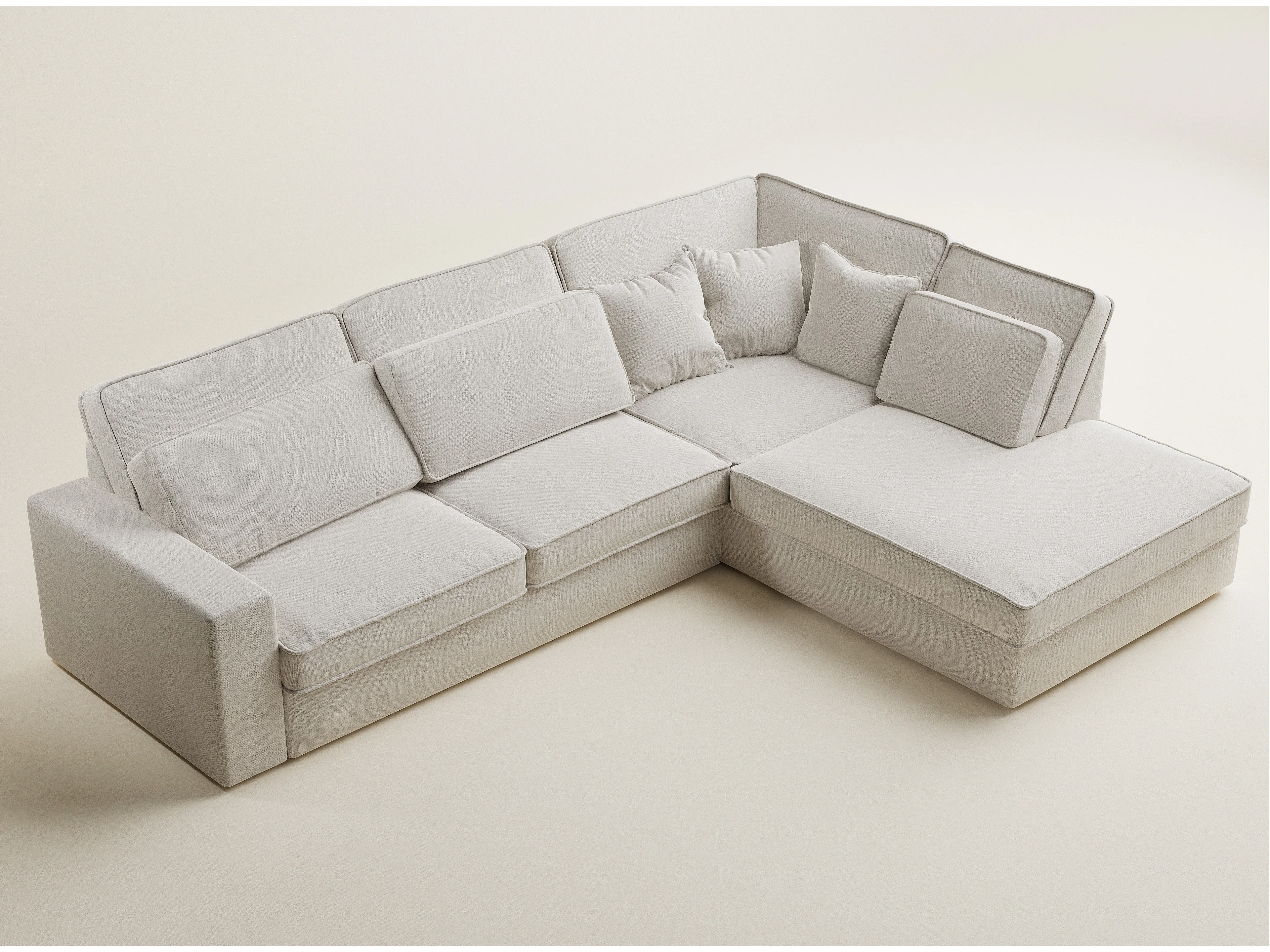 Canapé d'angle droit 5 places en tissu tressé beige clair KIROU