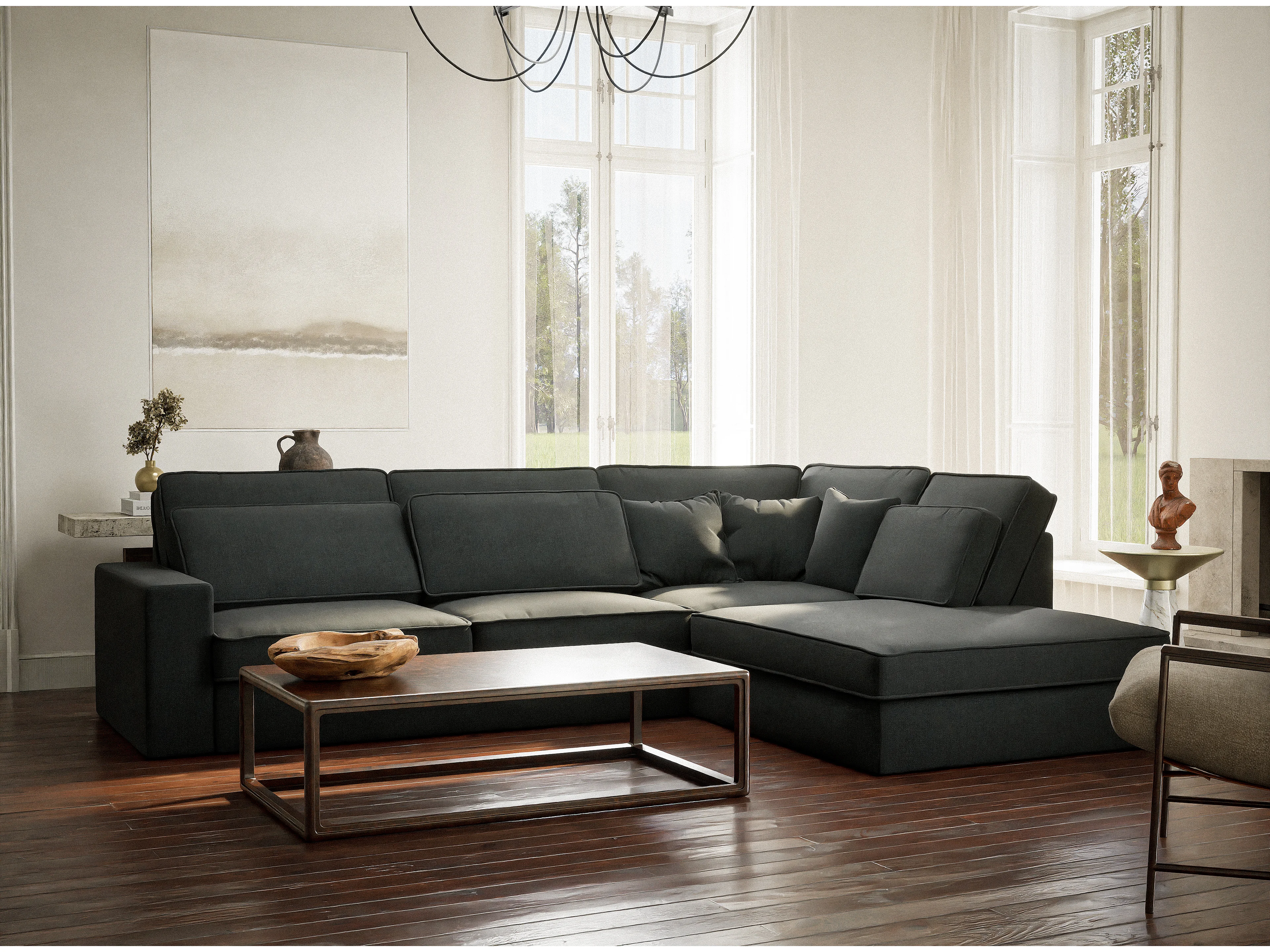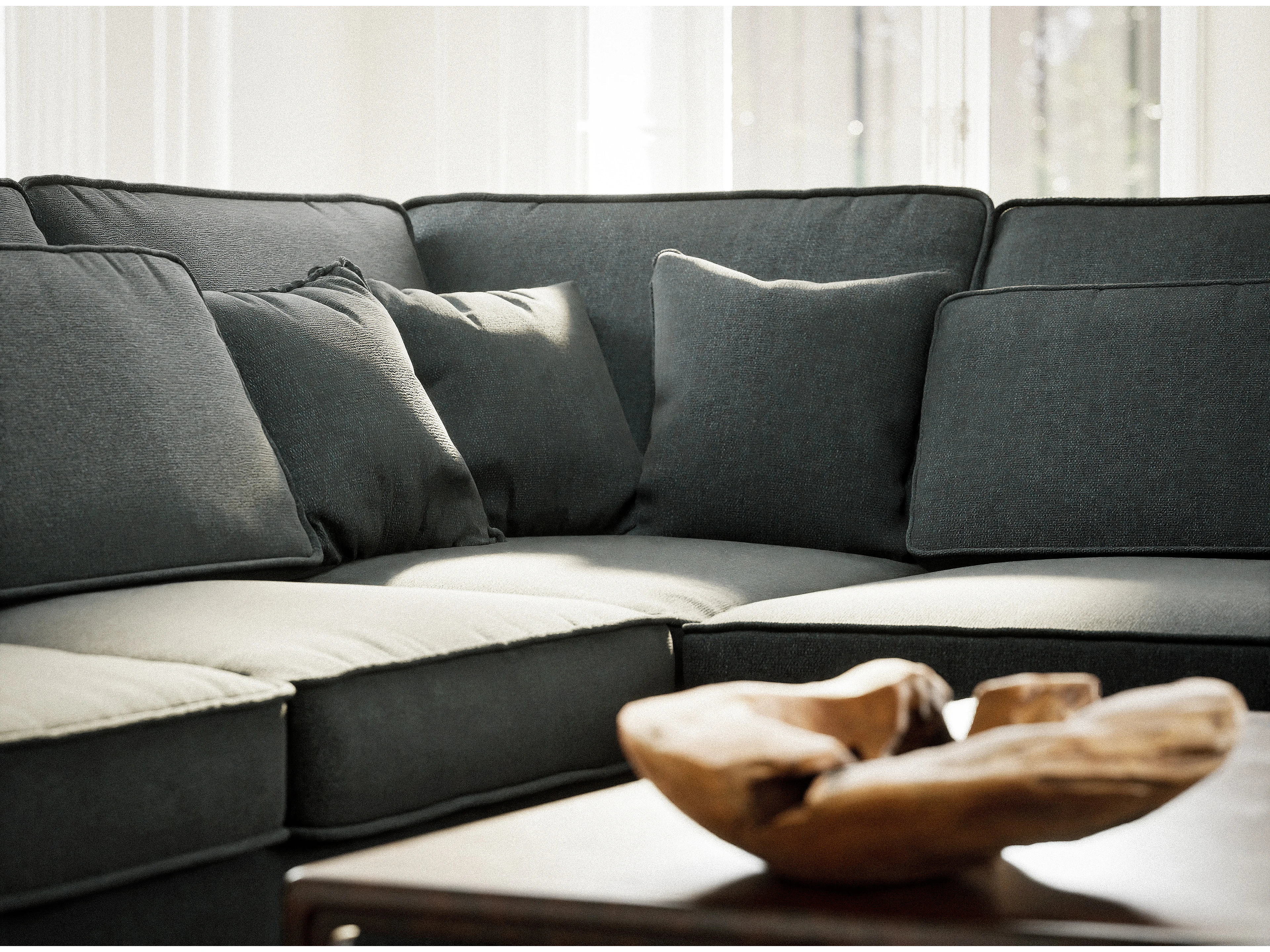 Canapé d'angle droit 5 places en tissu tressé turquoise KIROU