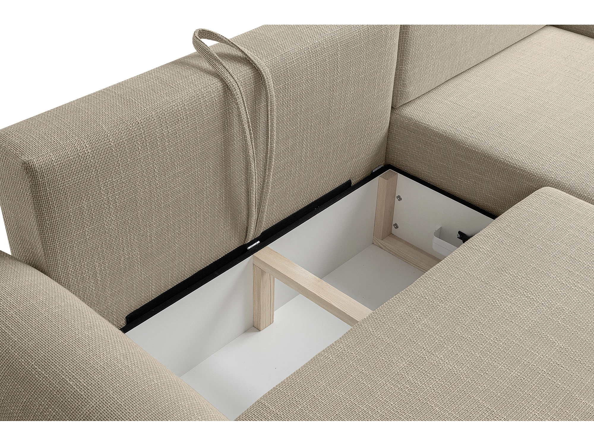 Canapé d’angle droit en tissu tressé beige, résistant à l’usure, avec fonction couchage – ARTE PREMIUM